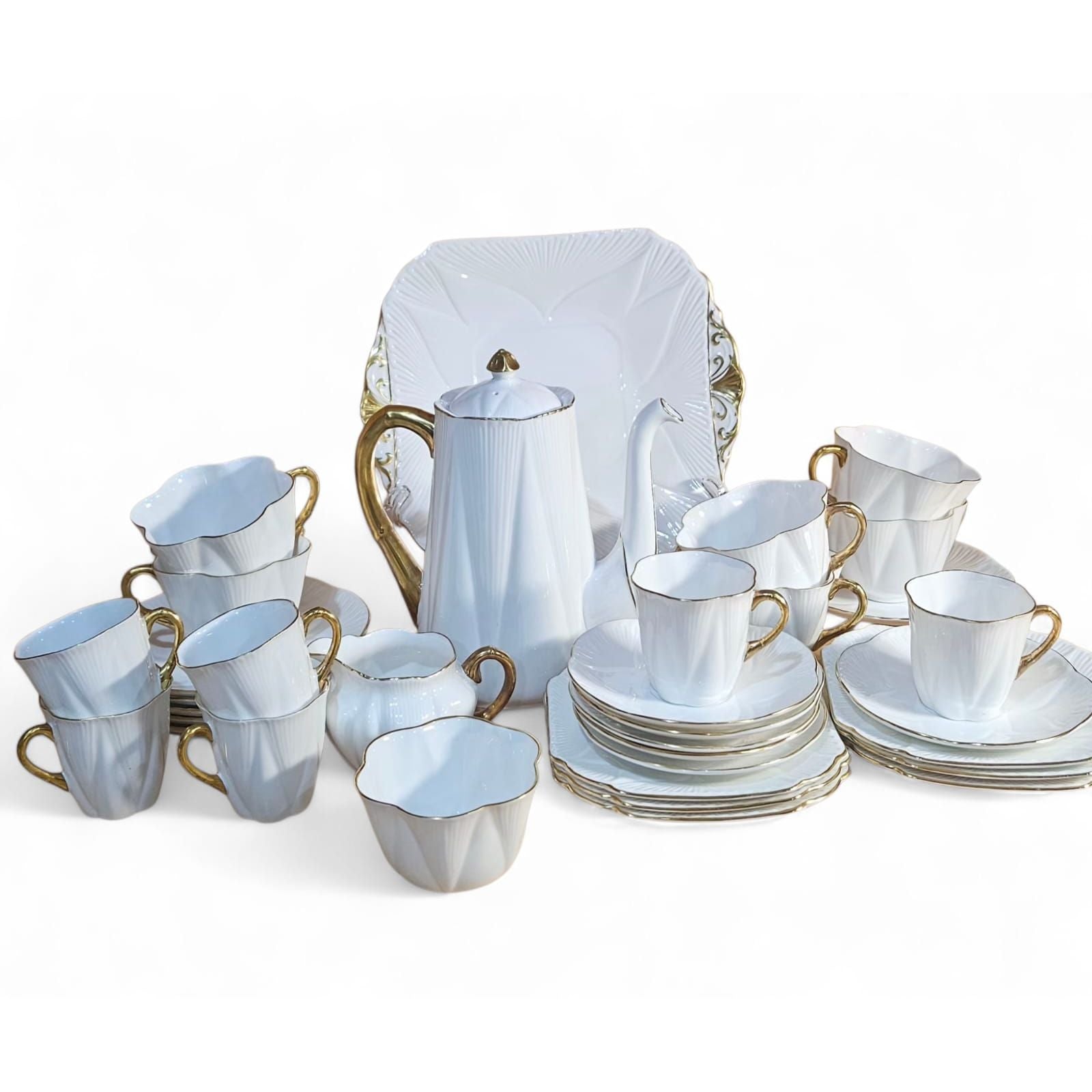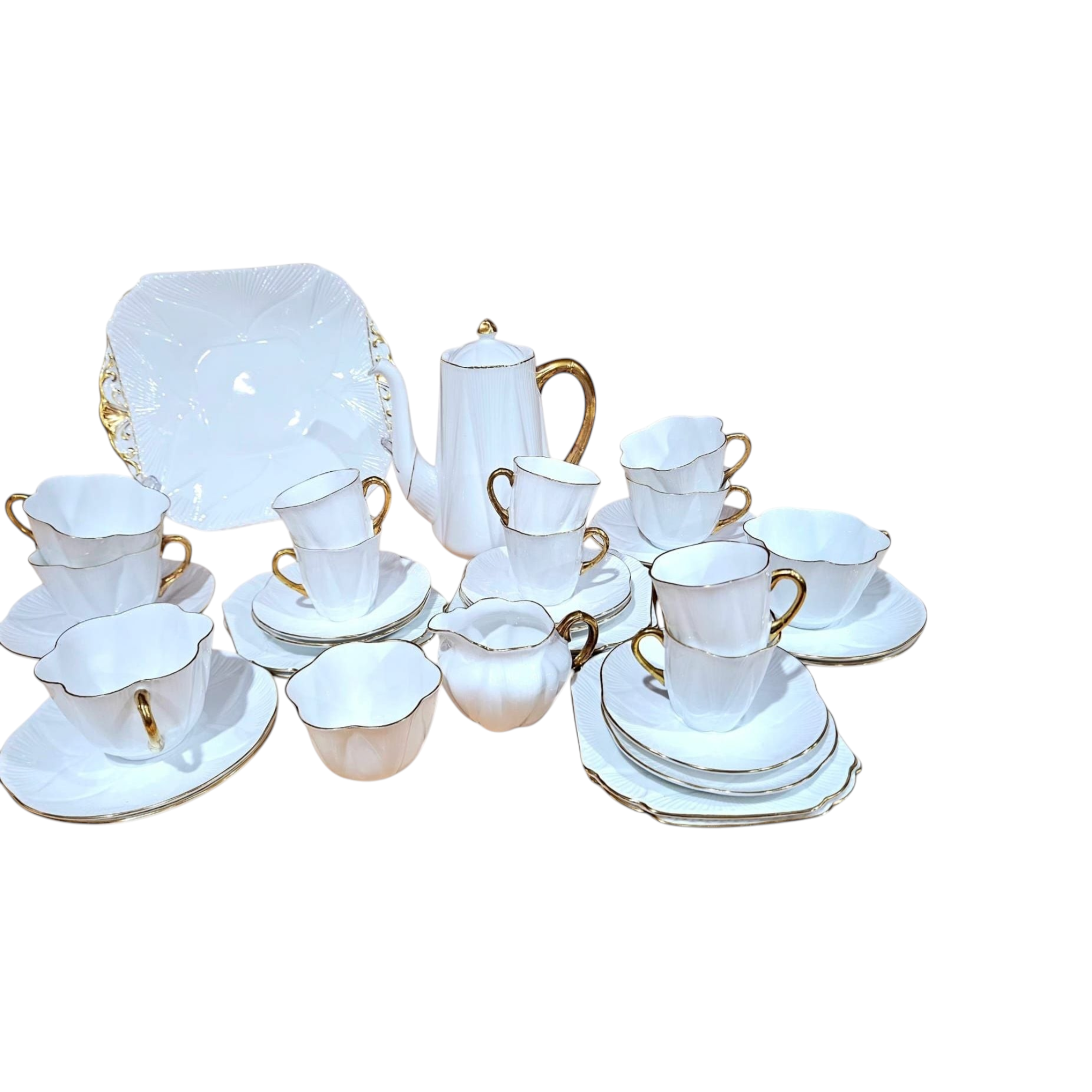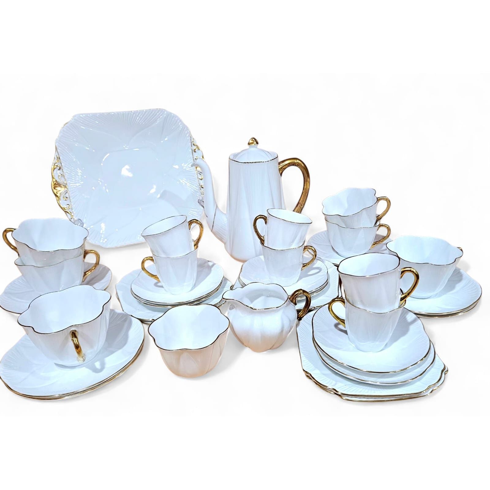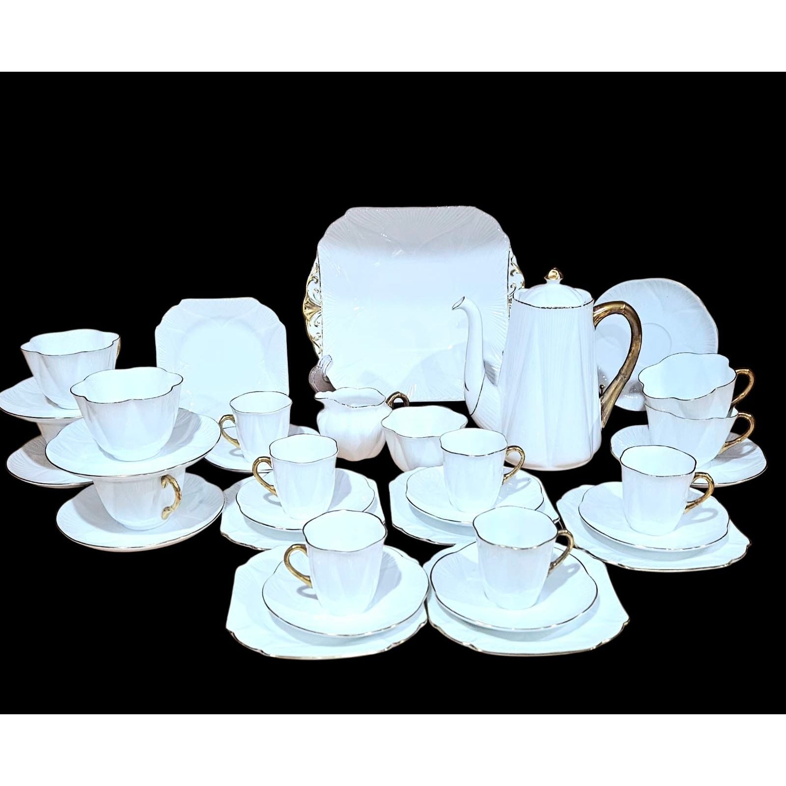 Shelley- ‘REGENCY’- White and Gold Dainty 37 pcs Tea/Coffee Set which Includes: