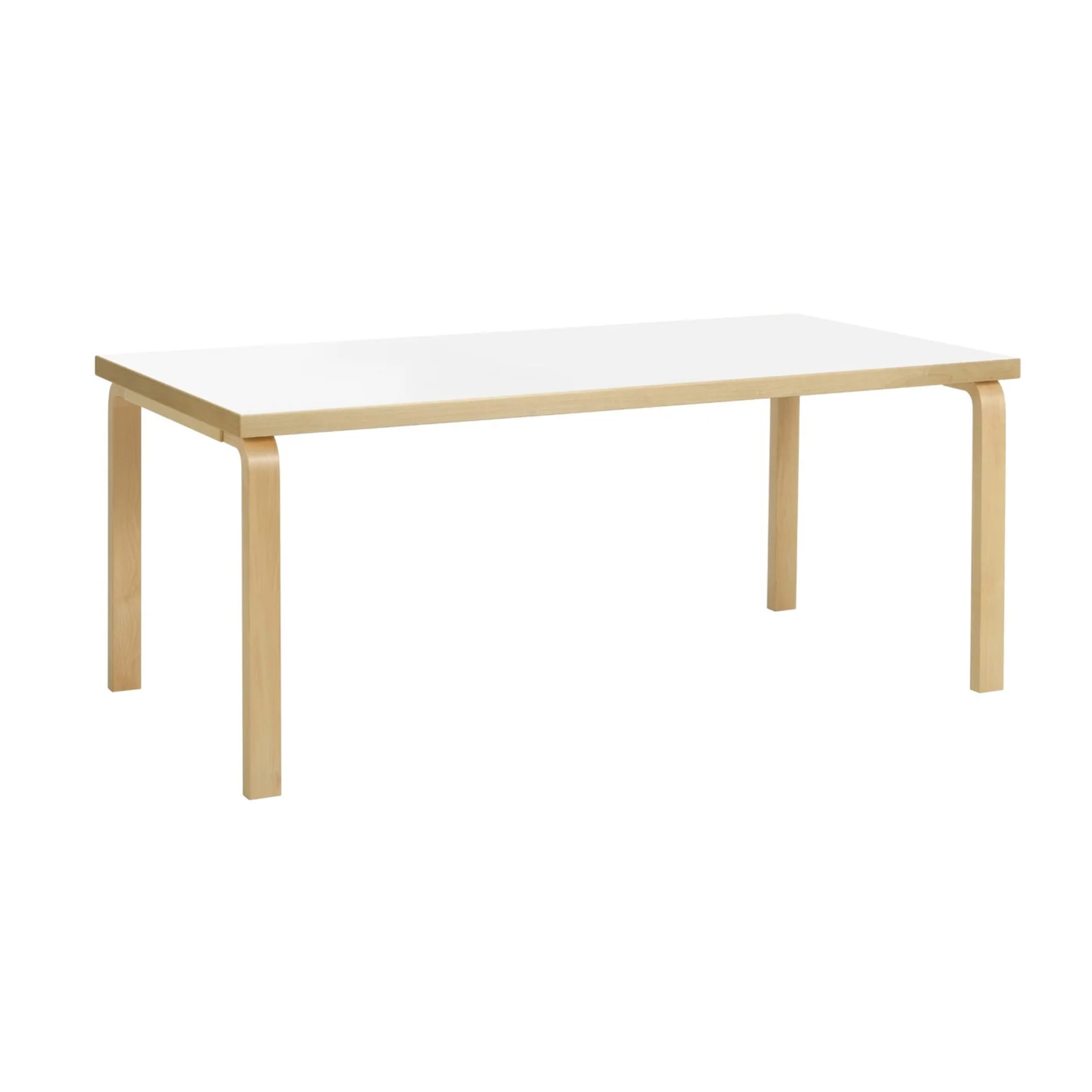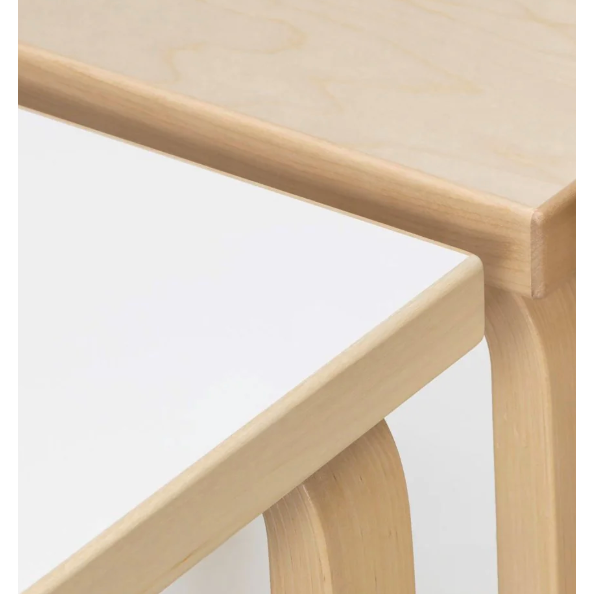 This iconic Aalto table features legs and edge-bands of Finnish birch and a top of white laminate. It radiates natural beauty and warmth. It is a practical yet stunning piece, that has aged gracefully over the years it has been in our family home. It shows signs of general wear and tear including some superficial scratches that only add to its character. Table 81A is the perfect size for a dining group of 4-6 people. 6 Aalto chairs are also available.