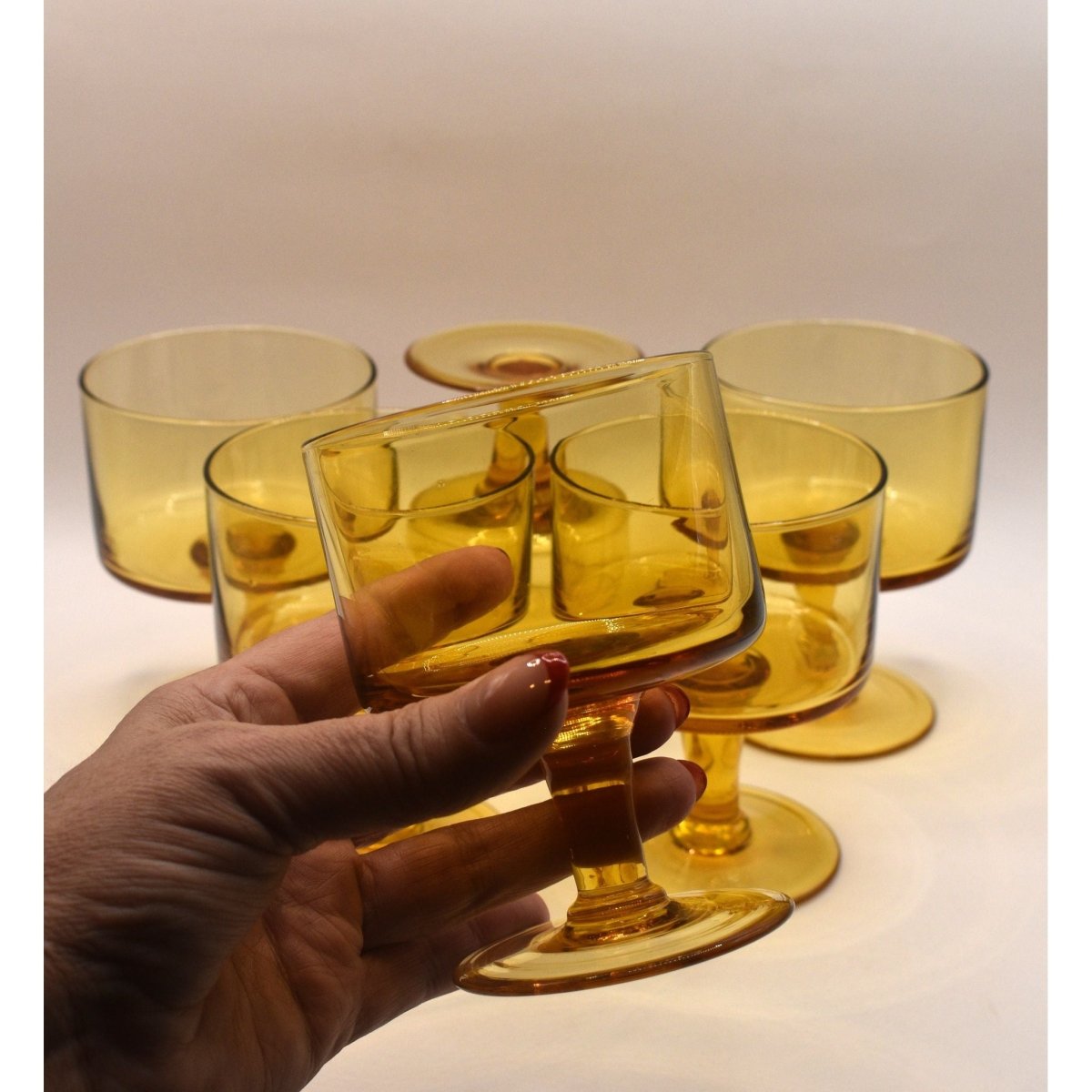 Elevate your entertaining with this stunning set of 6 amber wine glasses that blend timeless elegance with everyday versatility. The warm, rich amber hue adds a touch of sophistication to any table setting, whether you're hosting an intimate dinner party or a casual gathering with friends. These beautifully crafted glasses are equally at home cradling a full-bodied red, a crisp cocktail, or even a decadent dessert. Their simple yet refined design complements both modern and traditional décor, making them a go-to choice for wine enthusiasts and entertaining lovers alike. Perfect for upgrading your glassware collection or gifting to someone who appreciates the finer things in life.