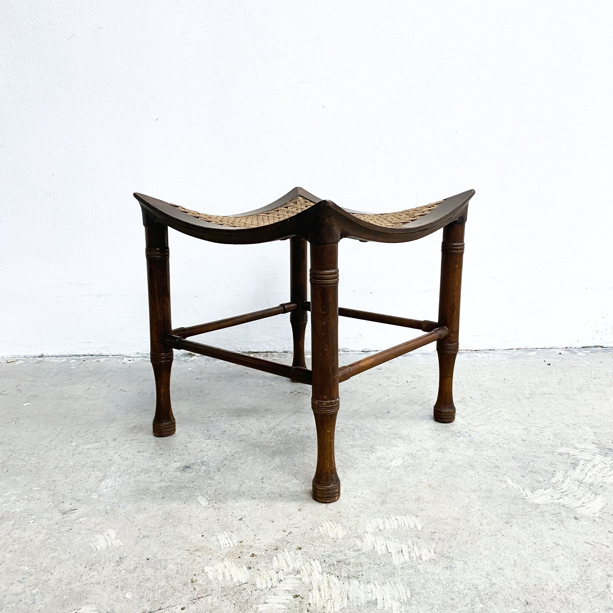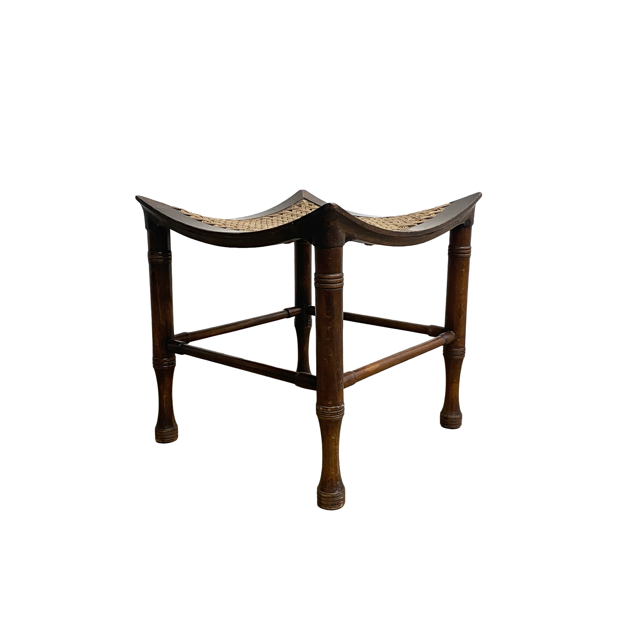 A rare Arts & Crafts stool by Liberty & Co., influenced by the firm’s interest in Egyptian and Near Eastern design.