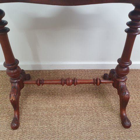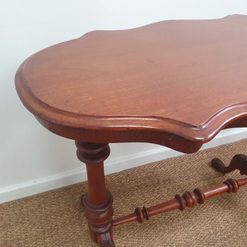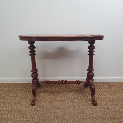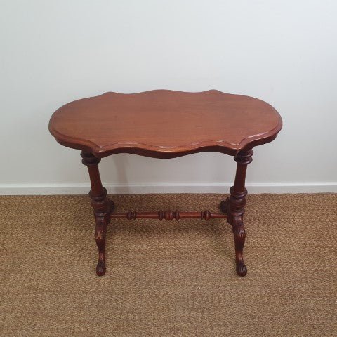 This antique cedar hall table features a serpentine edge and a turned stretcher base, showcasing classic timber craftsmanship. Its elegant proportions and warm cedar tones make it a decorative piece for entryways, hallways, or living areas. A timeless addition that complements traditional and vintage-inspired interiors.