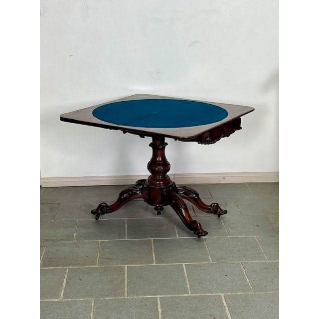This is a superior quality example of a genuine antique English early Victorian Period 1850s fold over and swivei top Card and Games Table.