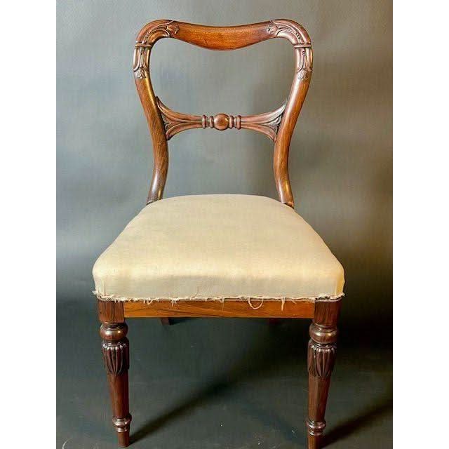 A set of six superb quality Antique English late George IV / William IV Dining Chairs. The chairs are beautifully crafted from the finest imported prestigious Brazilian Rosewood of mellowed lovely honey colour.
