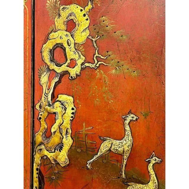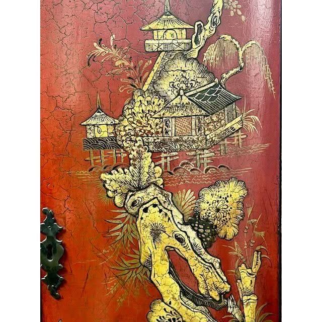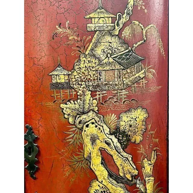 Original genuine antique period Chinoiserie embellished furniture is highly prized and sought after for use as statement pieces in homes by leading decorators.