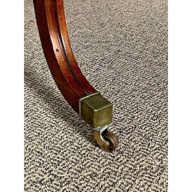 The uprights them selves have a central full height Rosewood cross banding with fine Ebony line inlays to compliment the cross banded drawers. the uprights at the lower end curve to form the feet which have beneath them the original all brass castor assemblies.