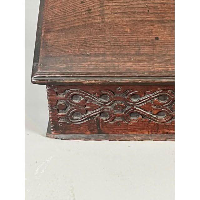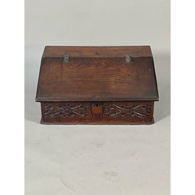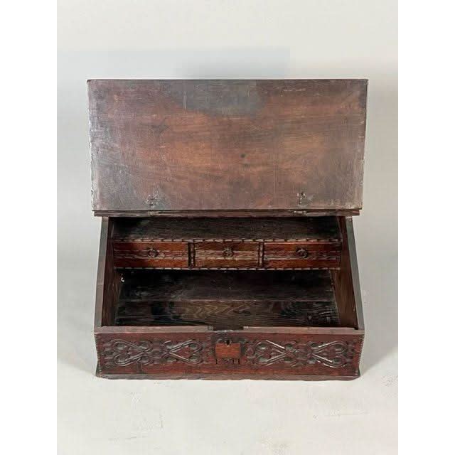 A good and decorative genuine antique English later 17th century or early 18th century carved solid Oak Bible Box / Document box / Table Box with a fitted interior including three drawers which also have carved embellished drawer fronts.