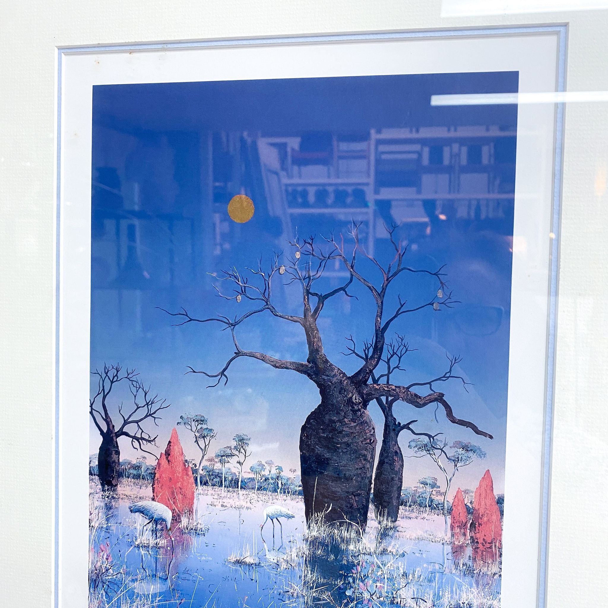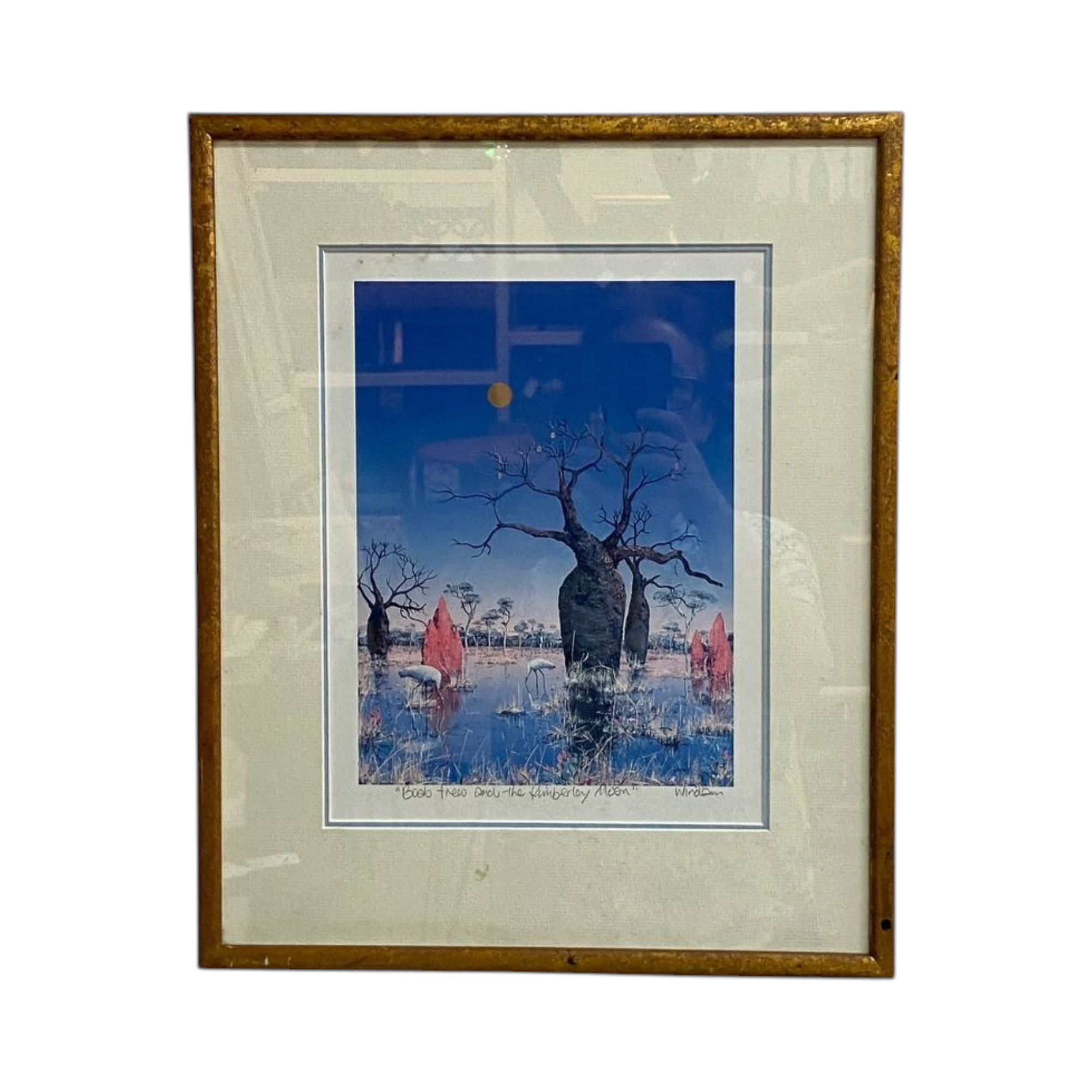 Stunning framed art print titled "Boab trees and the Kimberley Moon" by Ingrid Windram.