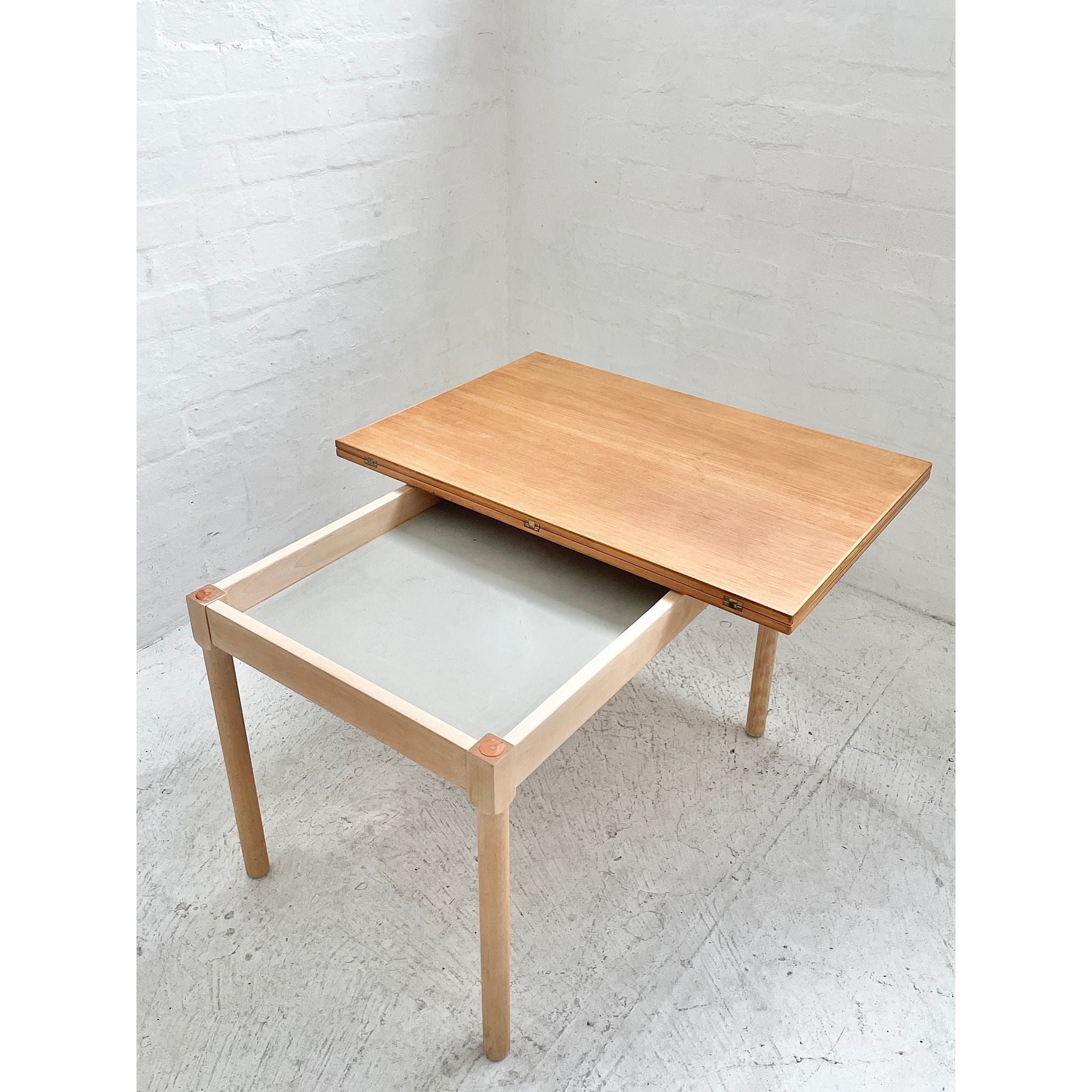 Flip-top coffee table in solid and veneered beech. Produced by Fritz Hansen. In original vintage condition.