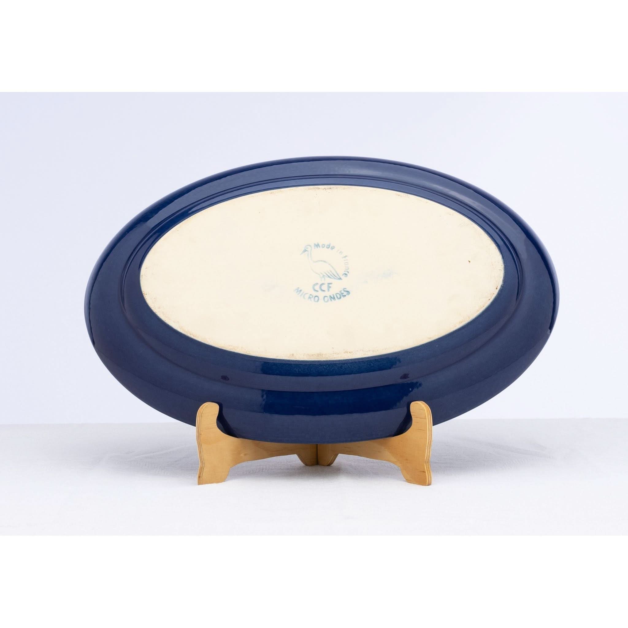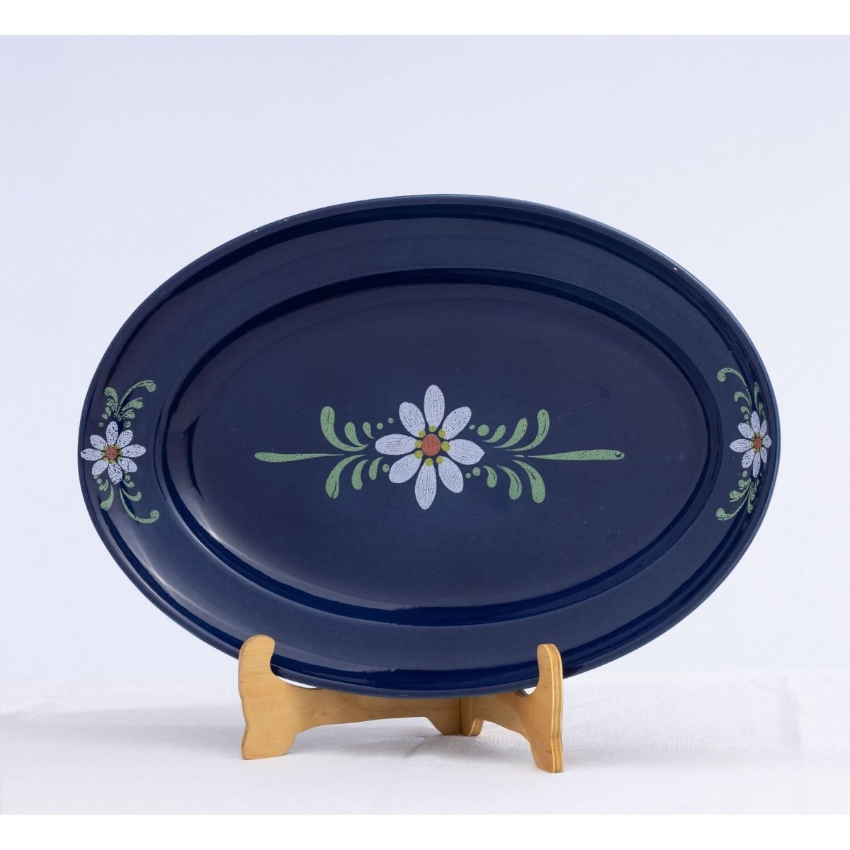 French Savoyard large oval blue glazed serving platter with floral designs from Annecy