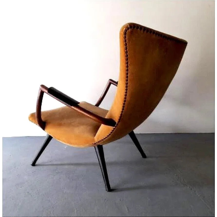 Original Guiseppe Scapinelli ‘Wingback’ sculptural lounge chairs, original upholstery with jacaranda frame & arms, 1950’s Brazil.