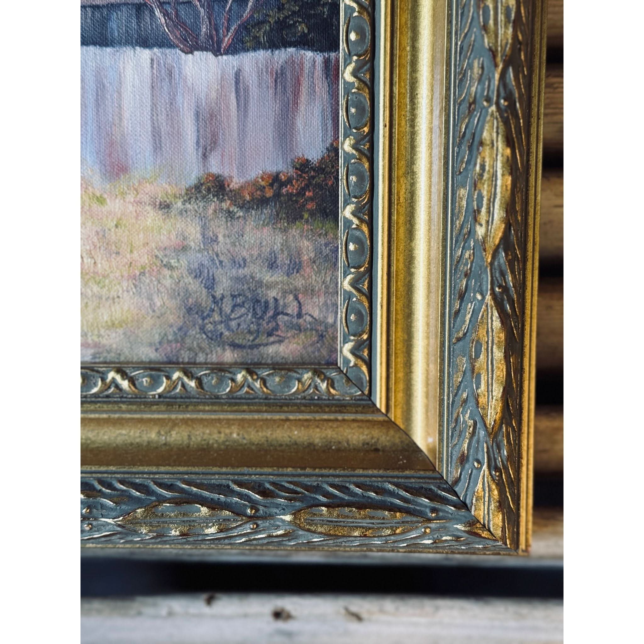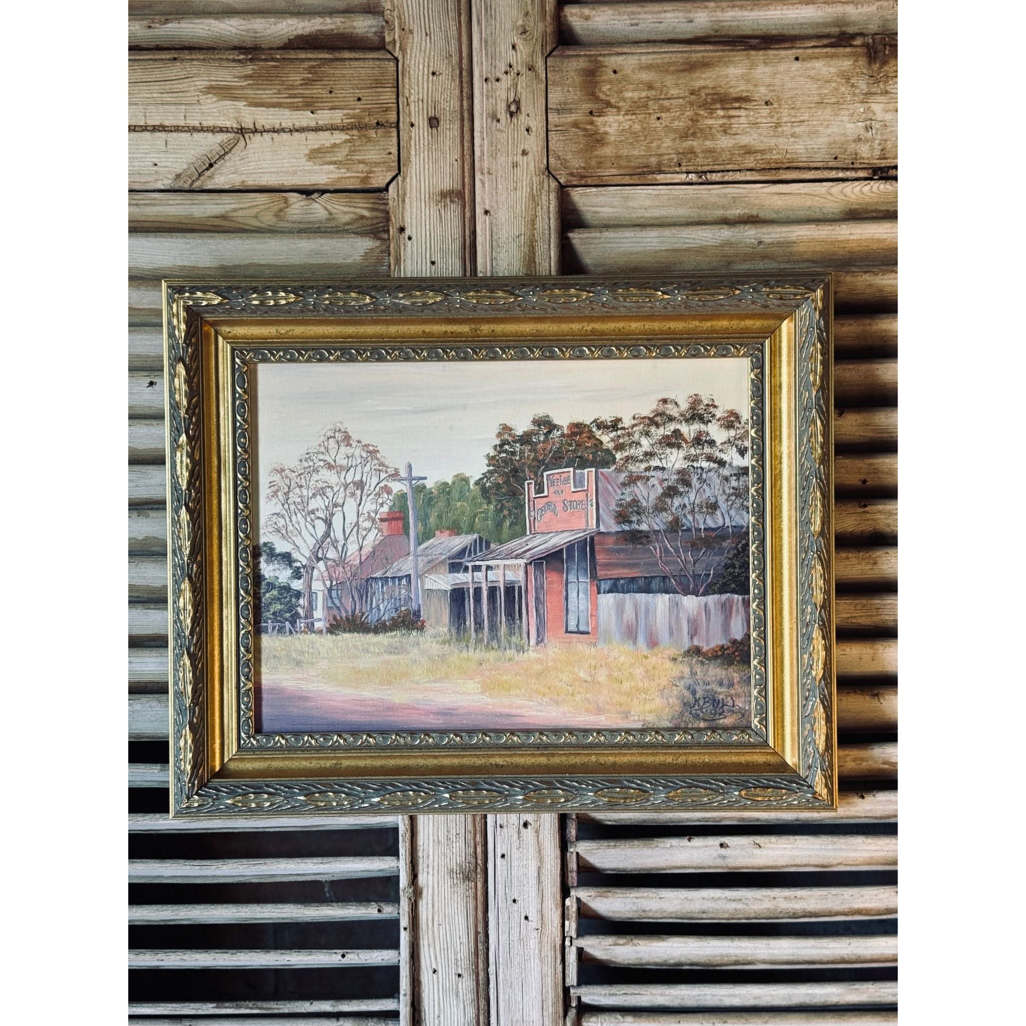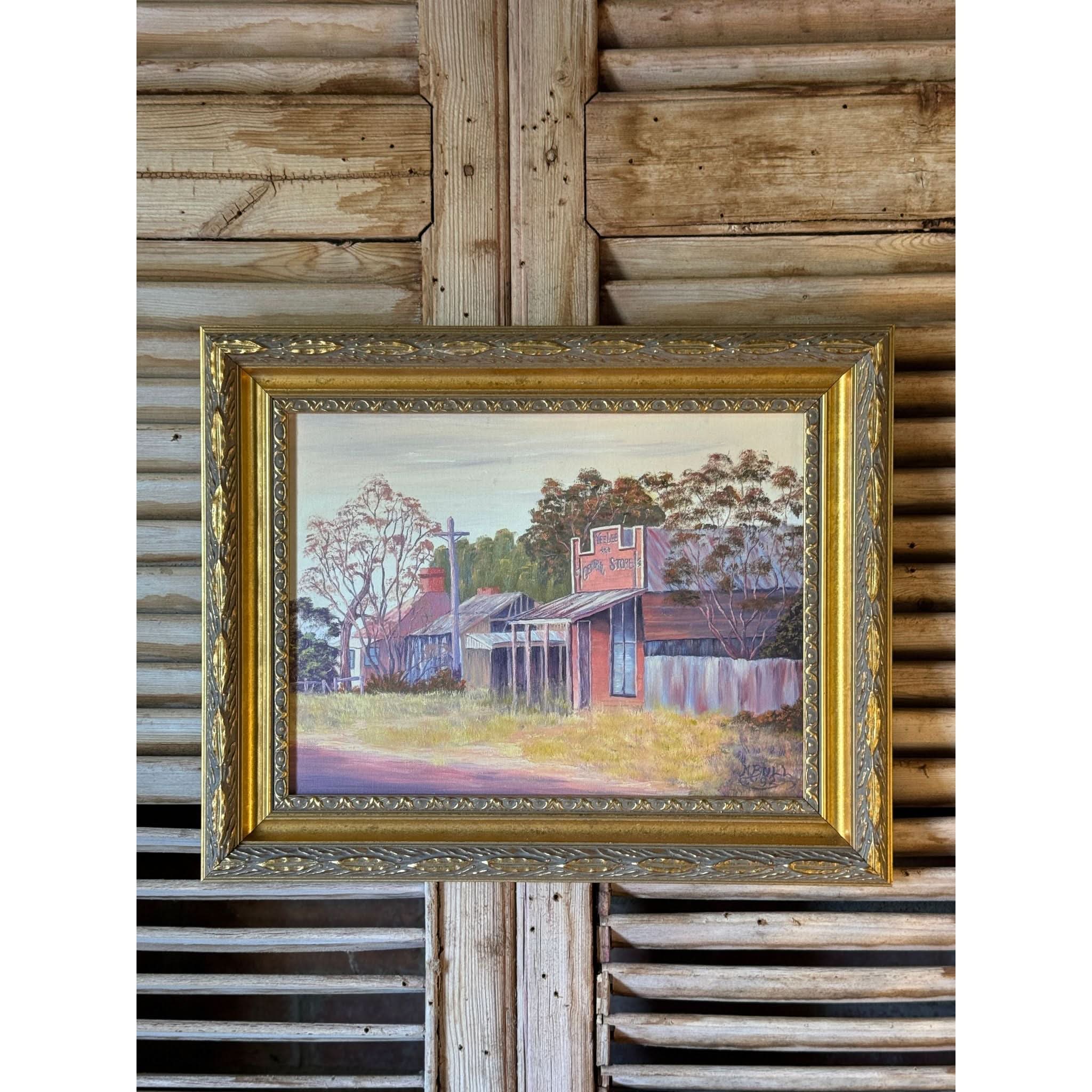 Vintage Australiana original painting on board. Newly framed in elegant gold frame. Ready to hang.