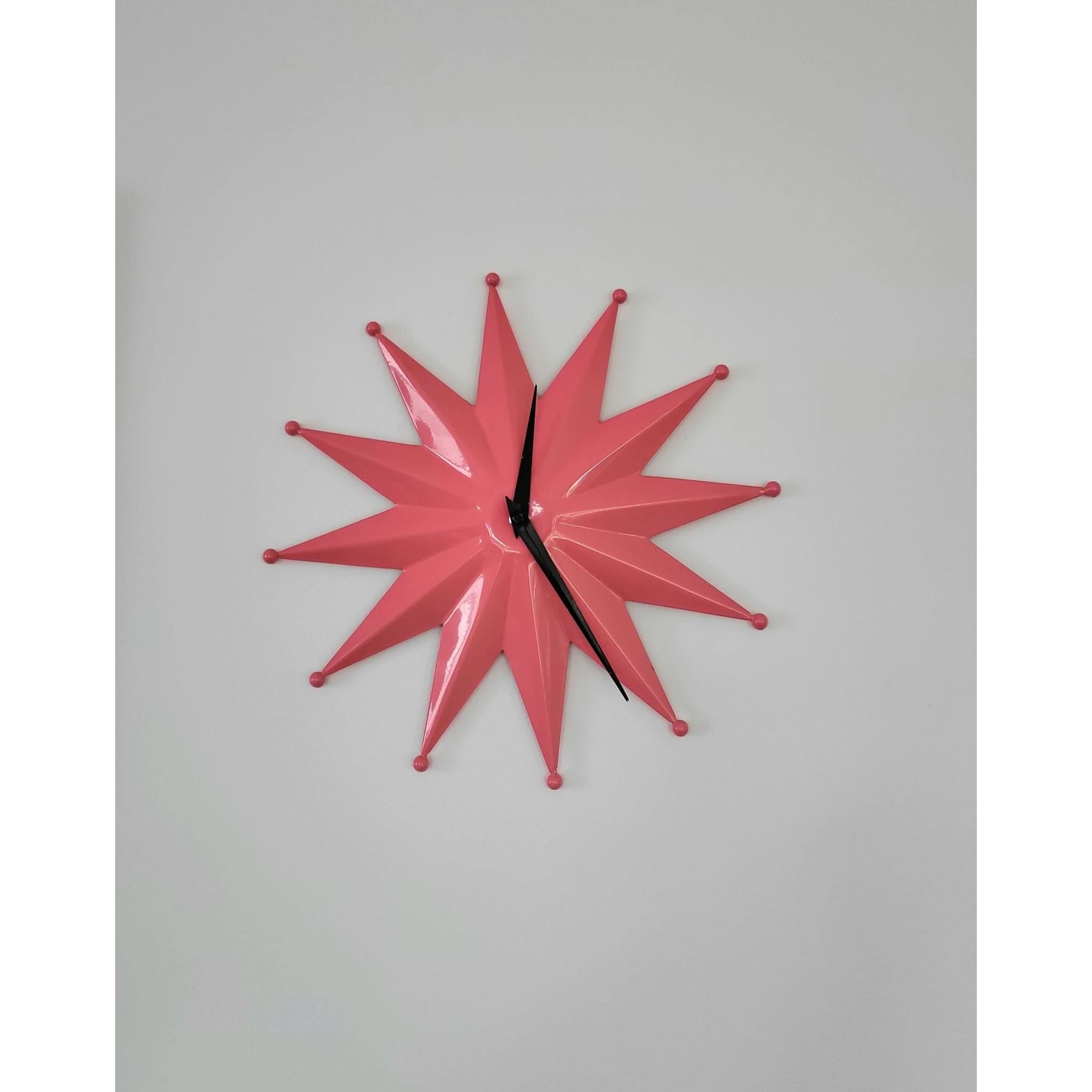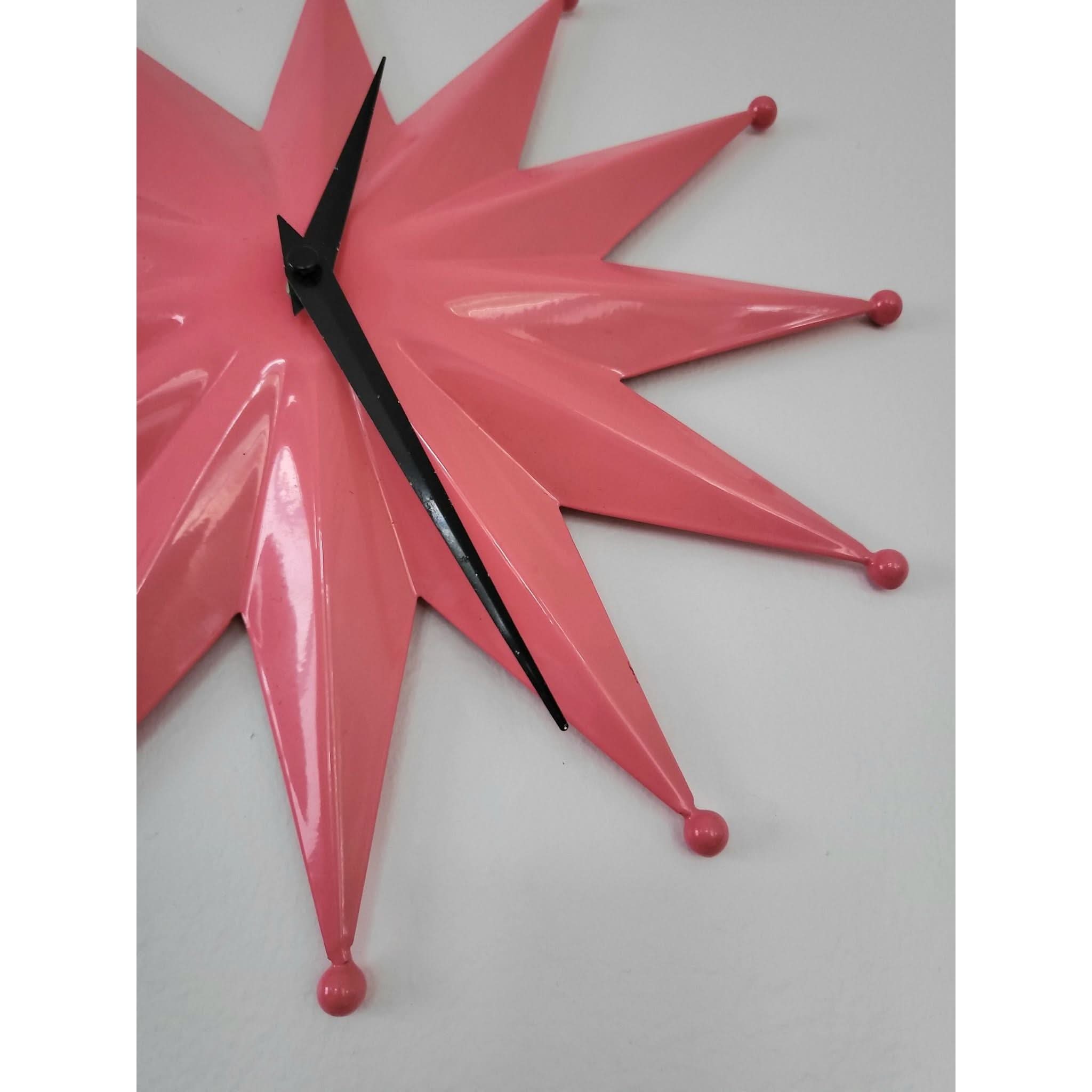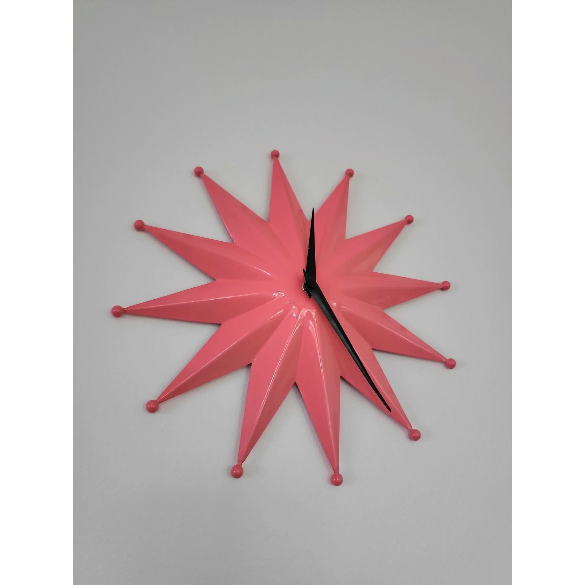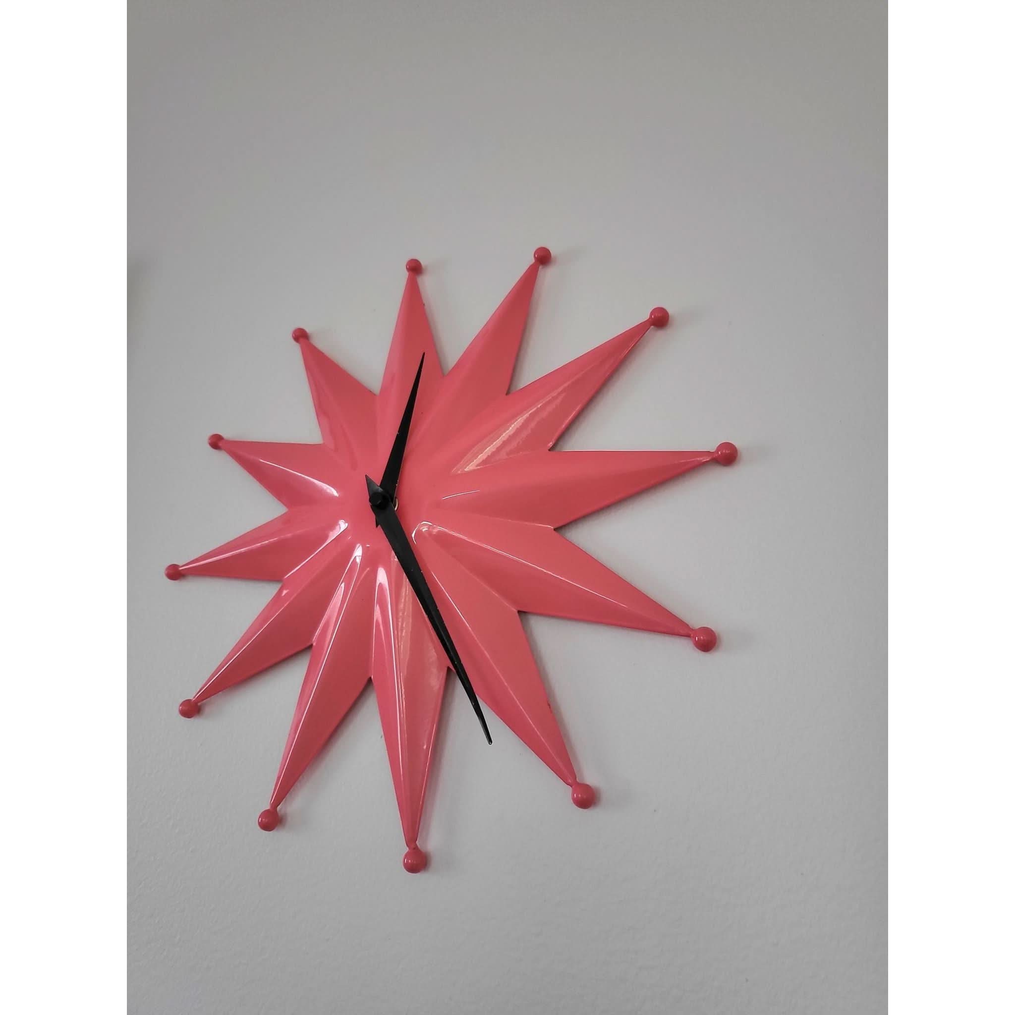 Make a statement with this striking Mid Century Modern starburst clock in vibrant pink.