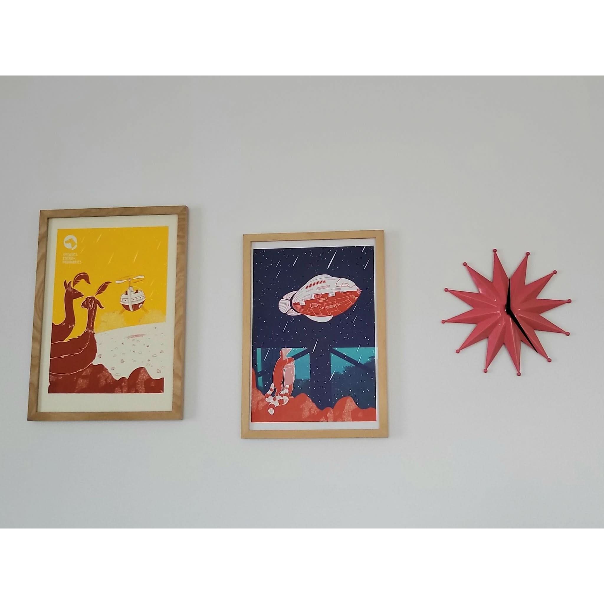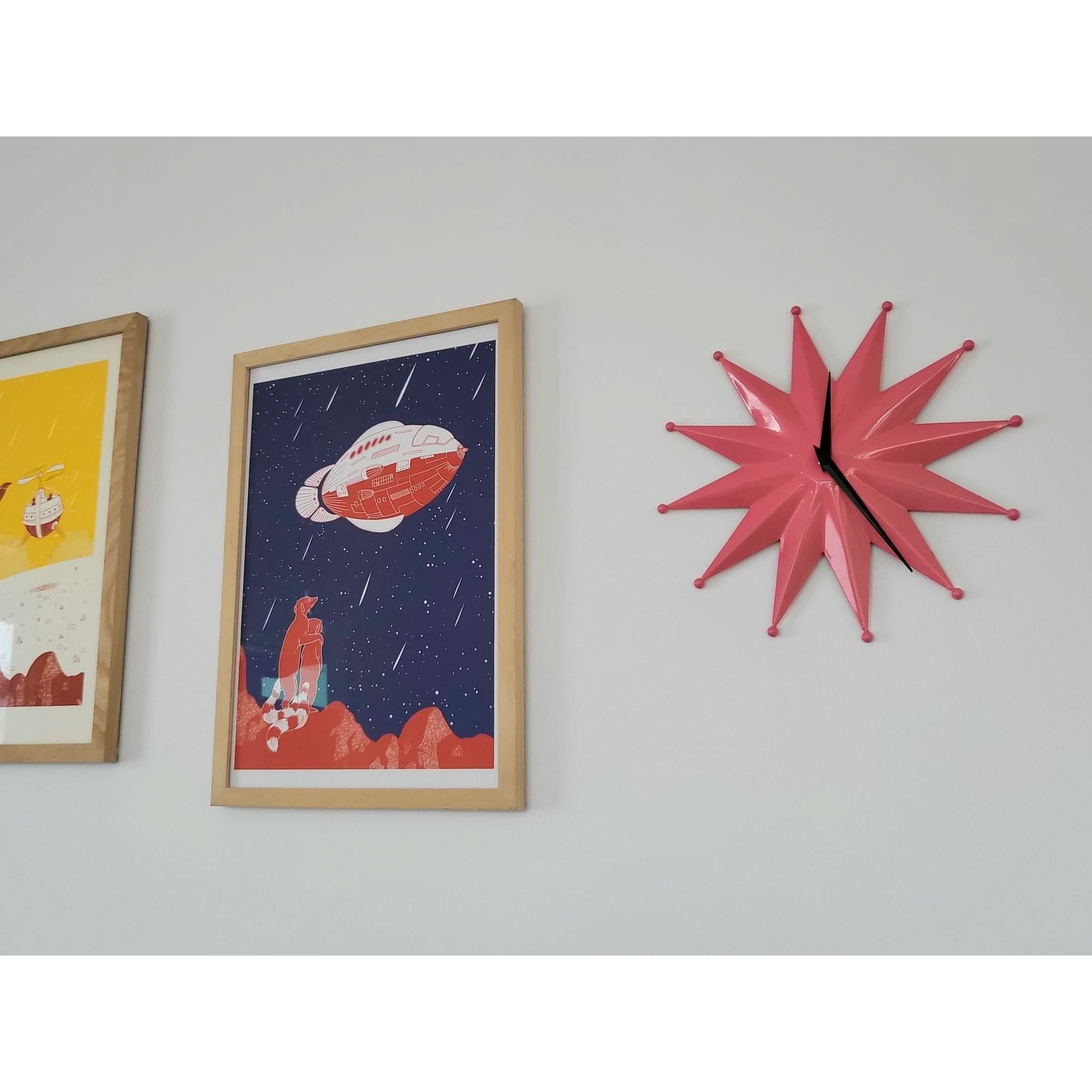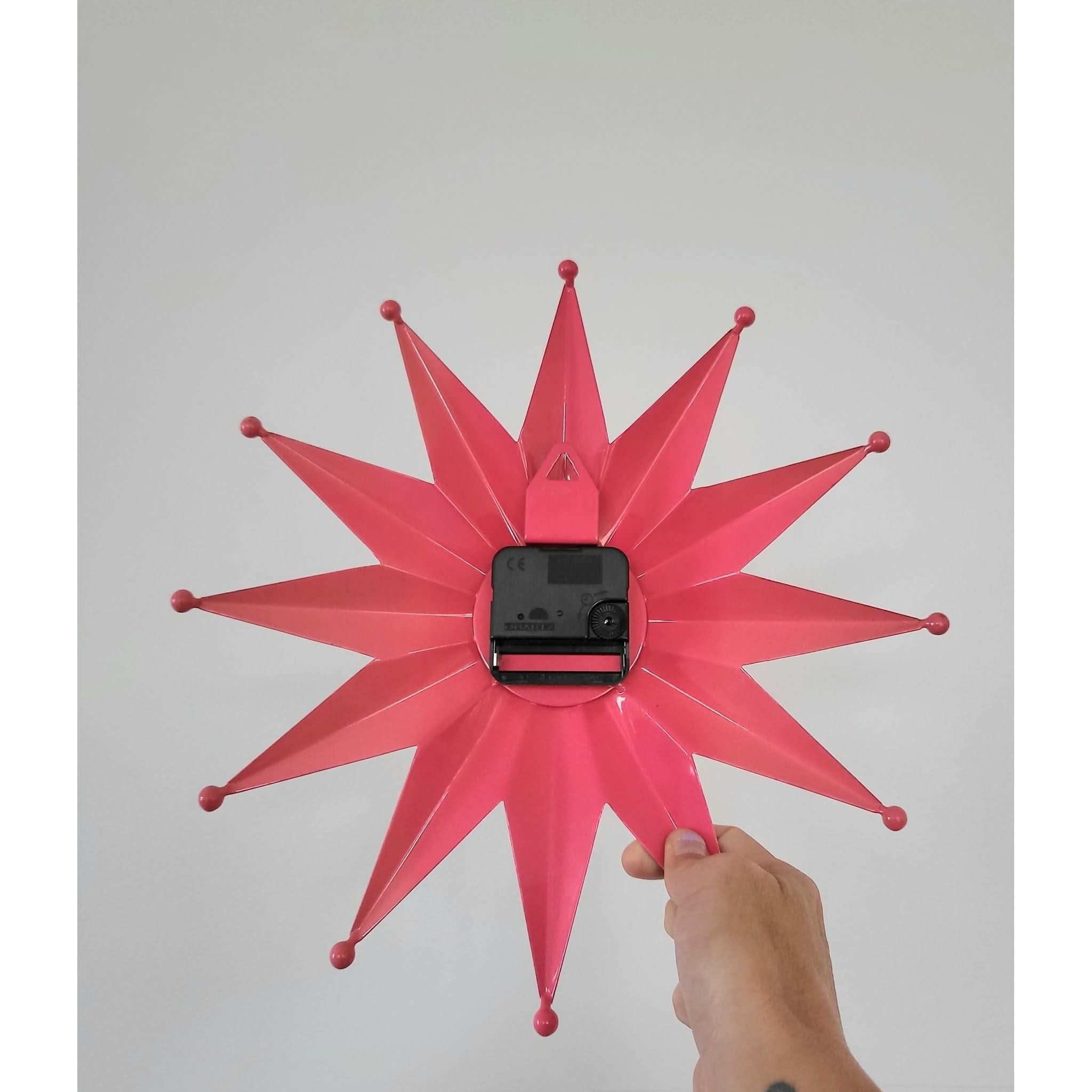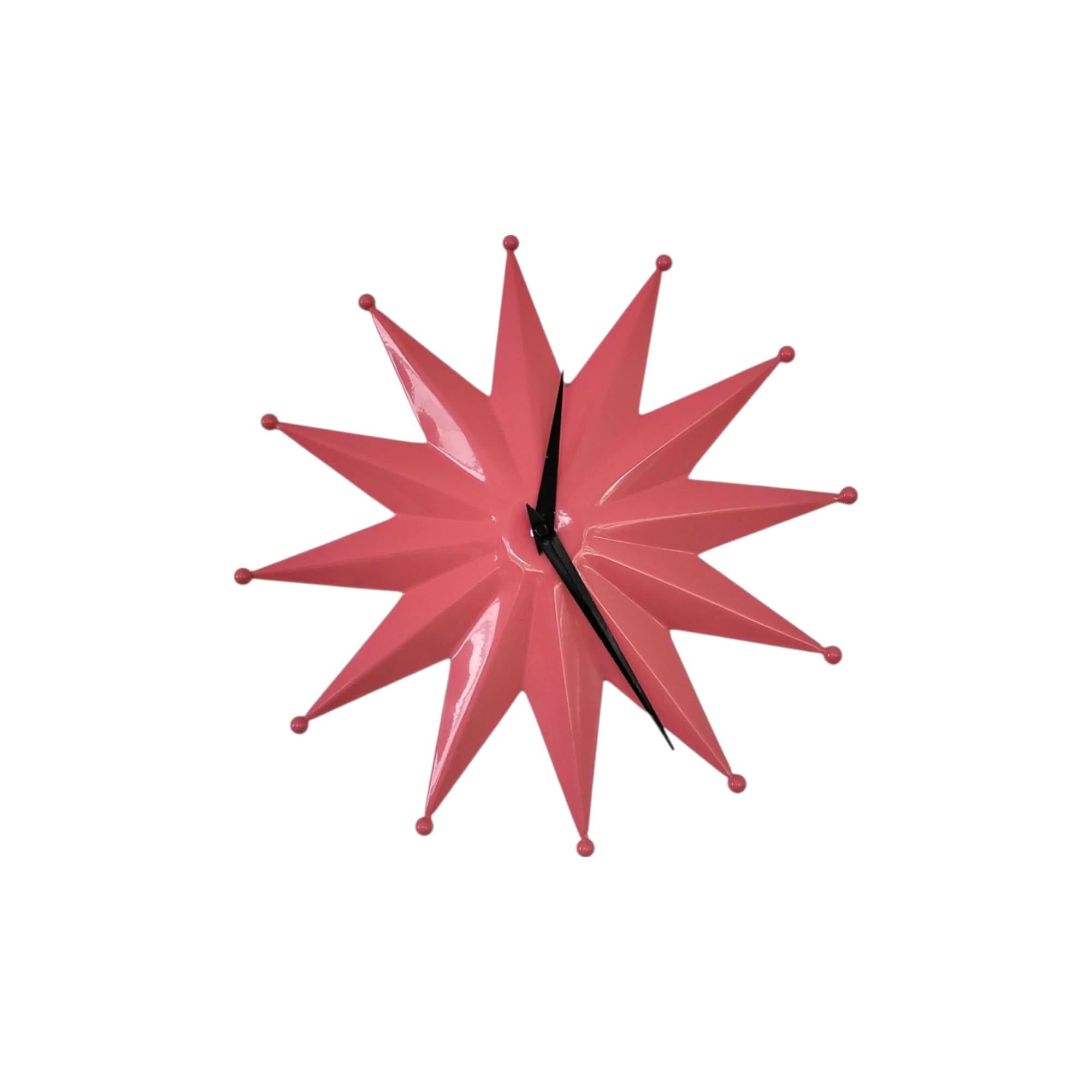 Make a statement with this striking Mid Century Modern starburst clock in vibrant pink.