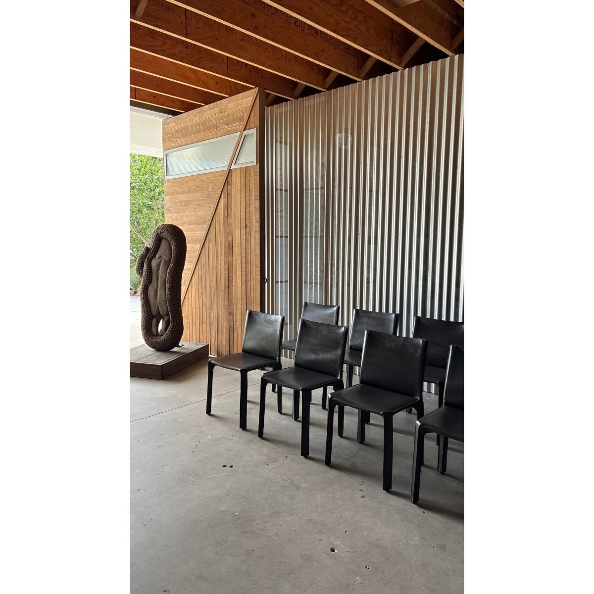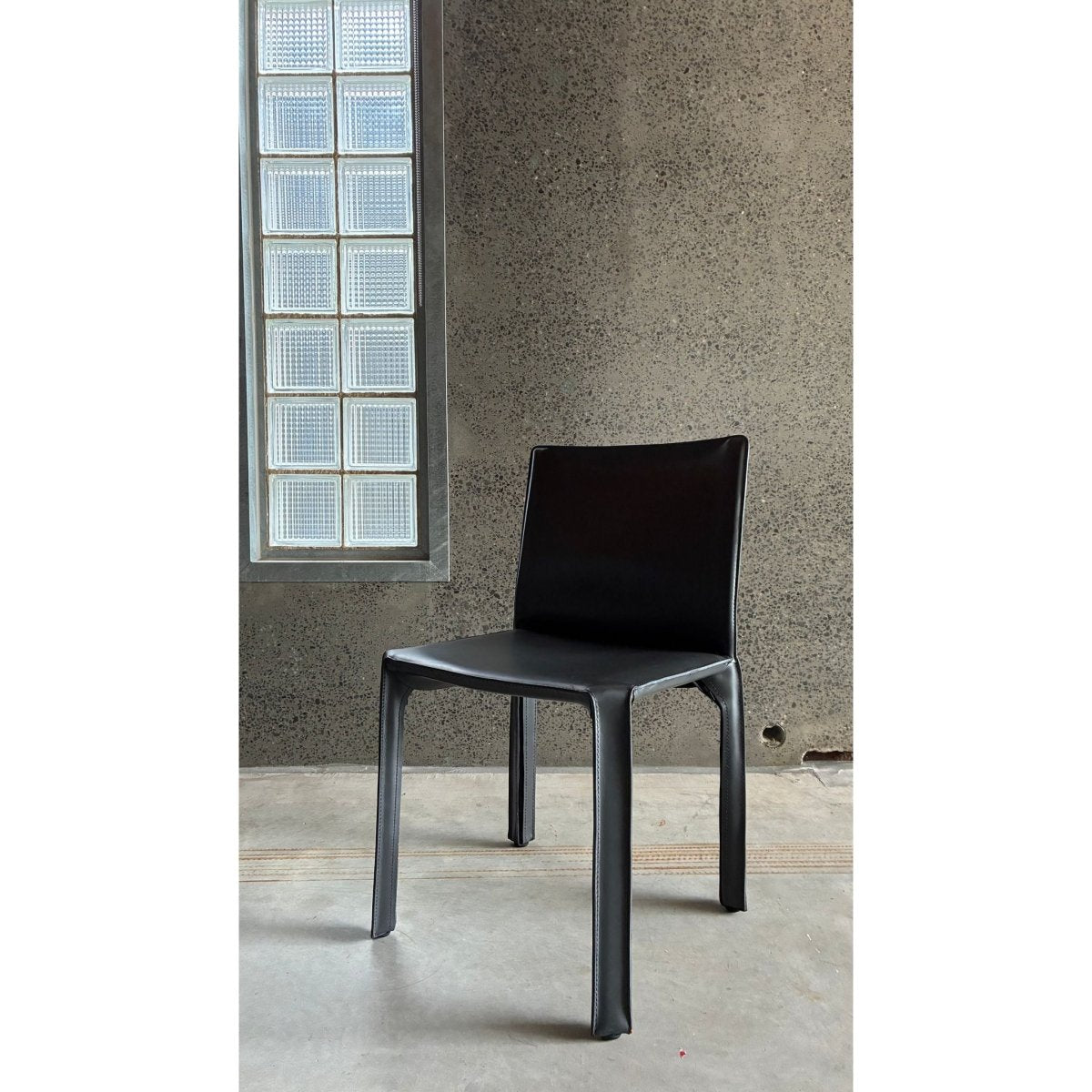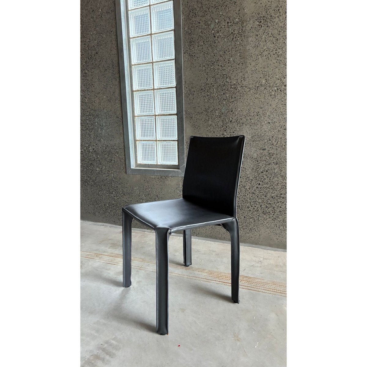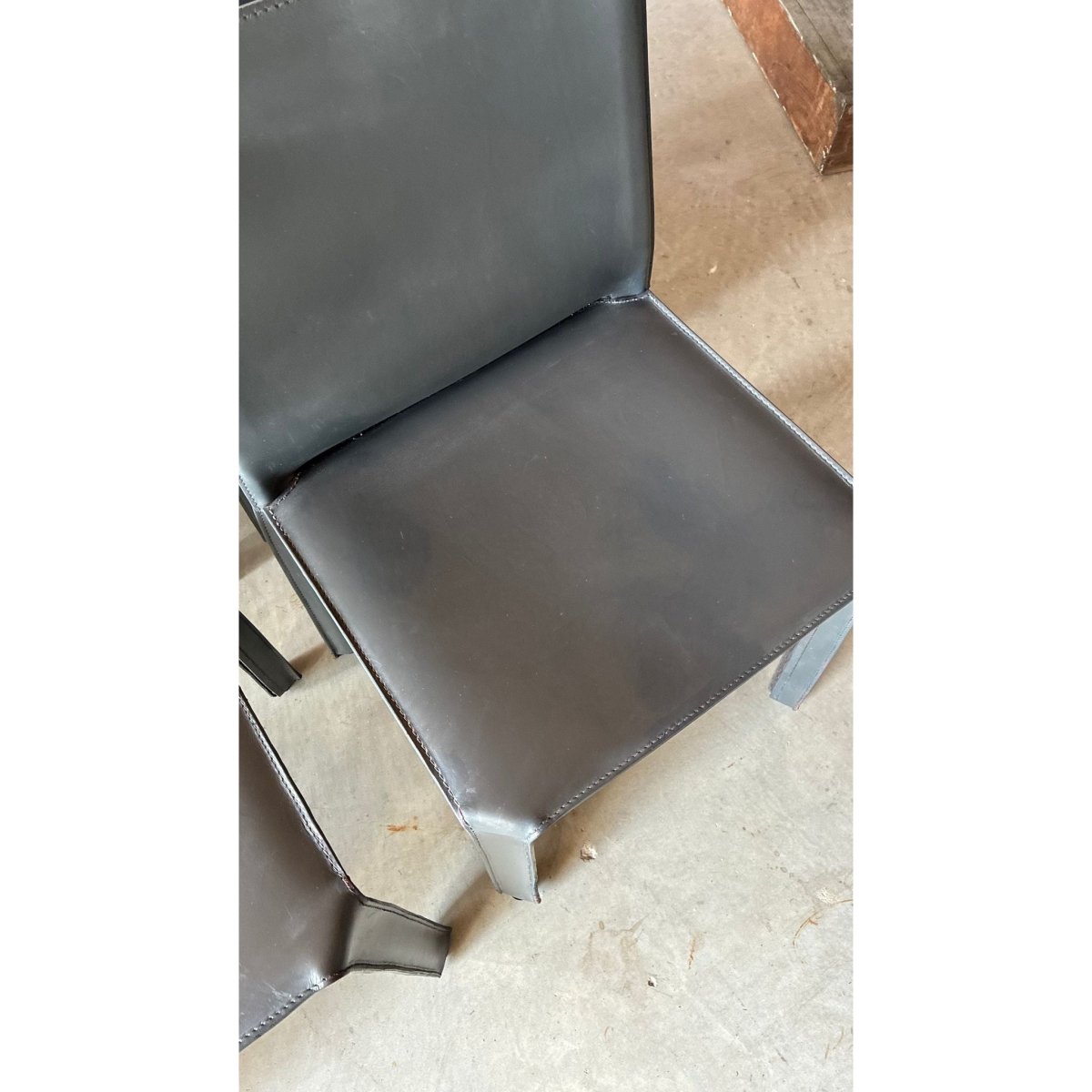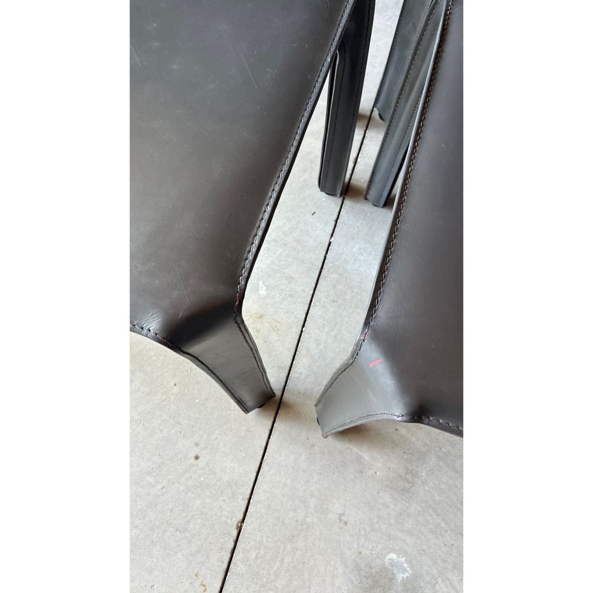 The chairs retain the signature profile of Bellinis design: clean lines, soft curves and slender, leather wrapped legs, giving them a sculptural presence with understated luxury.