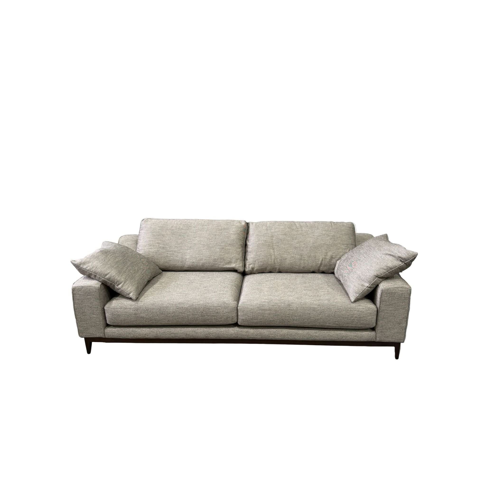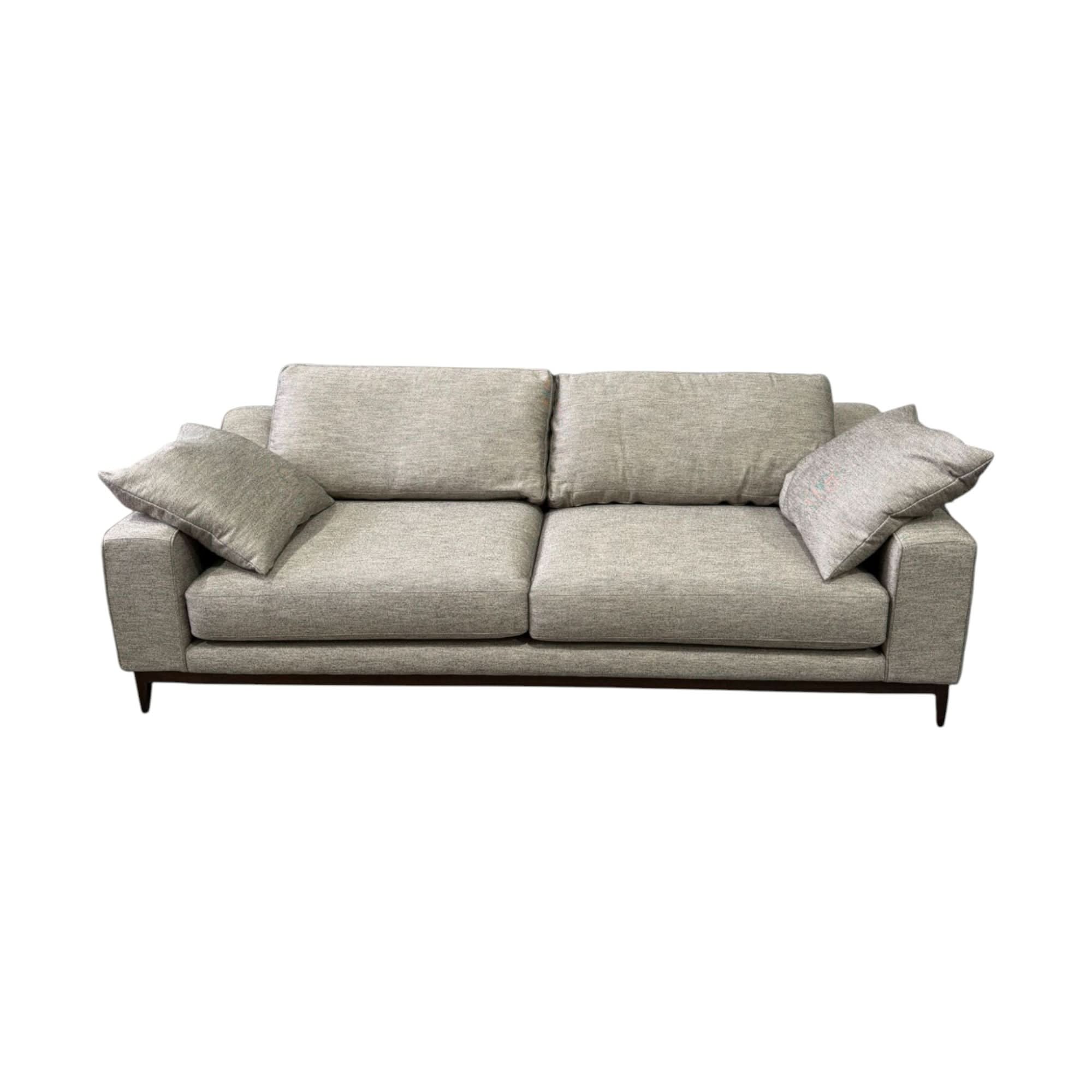 Experience exceptional comfort and quality with this expertly crafted sofa. The upholstery is a rich, woven fabric with a dynamic, two-tone texture, a blend of light and dark threads that gives it a unique character and a visually appealing depth. The deep, comfortable cushions and supportive backrests ensure a relaxing experience. With its sturdy frame and elegant, tapered legs, this sofa is built to last and designed to impress.