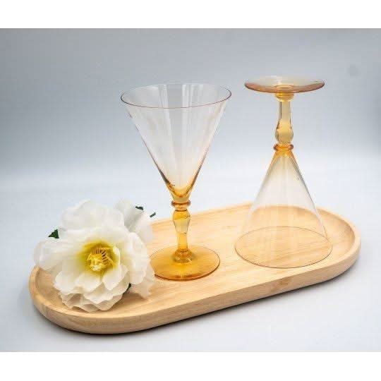 Gorgeous Amber Martini/Cocktail/Dessert Glasses. Great birthday gift for someone special. Great vintage condition These glasses are a must-have for any occasion. With their stunning amber color and timeless design, they'll add a touch of elegance to any gathering. Plus, the set of 2 allows you to share the experience with someone special. H:17cm - D: 9.75cm @ Rim - 7.25cm @ Base - H: 5.5cm Stem