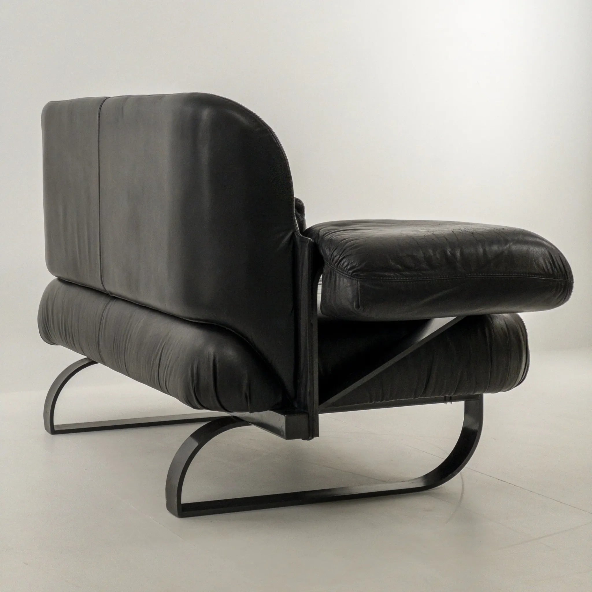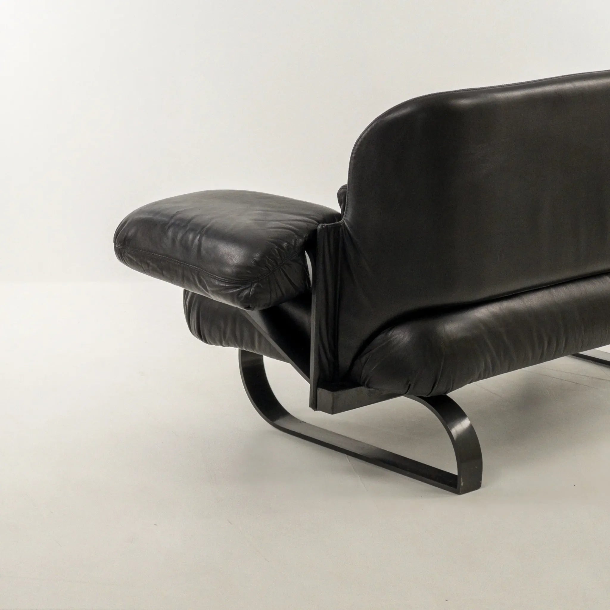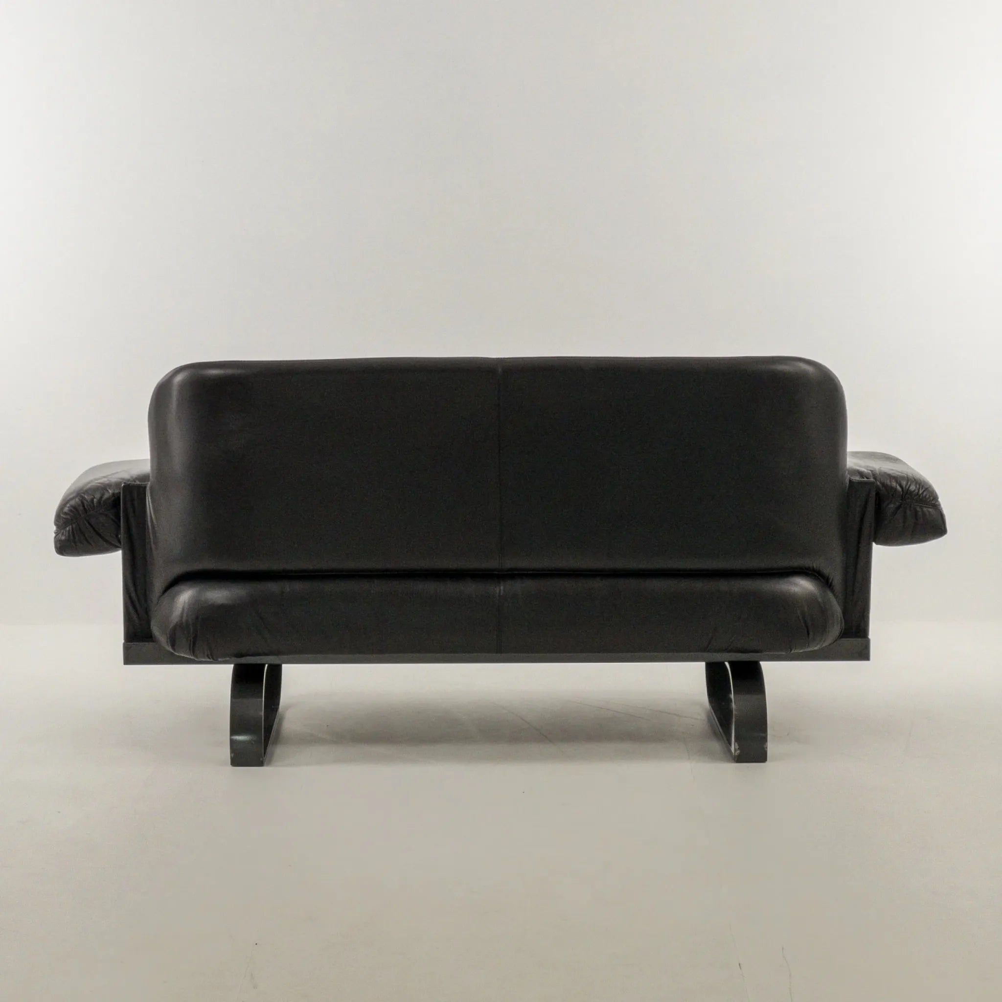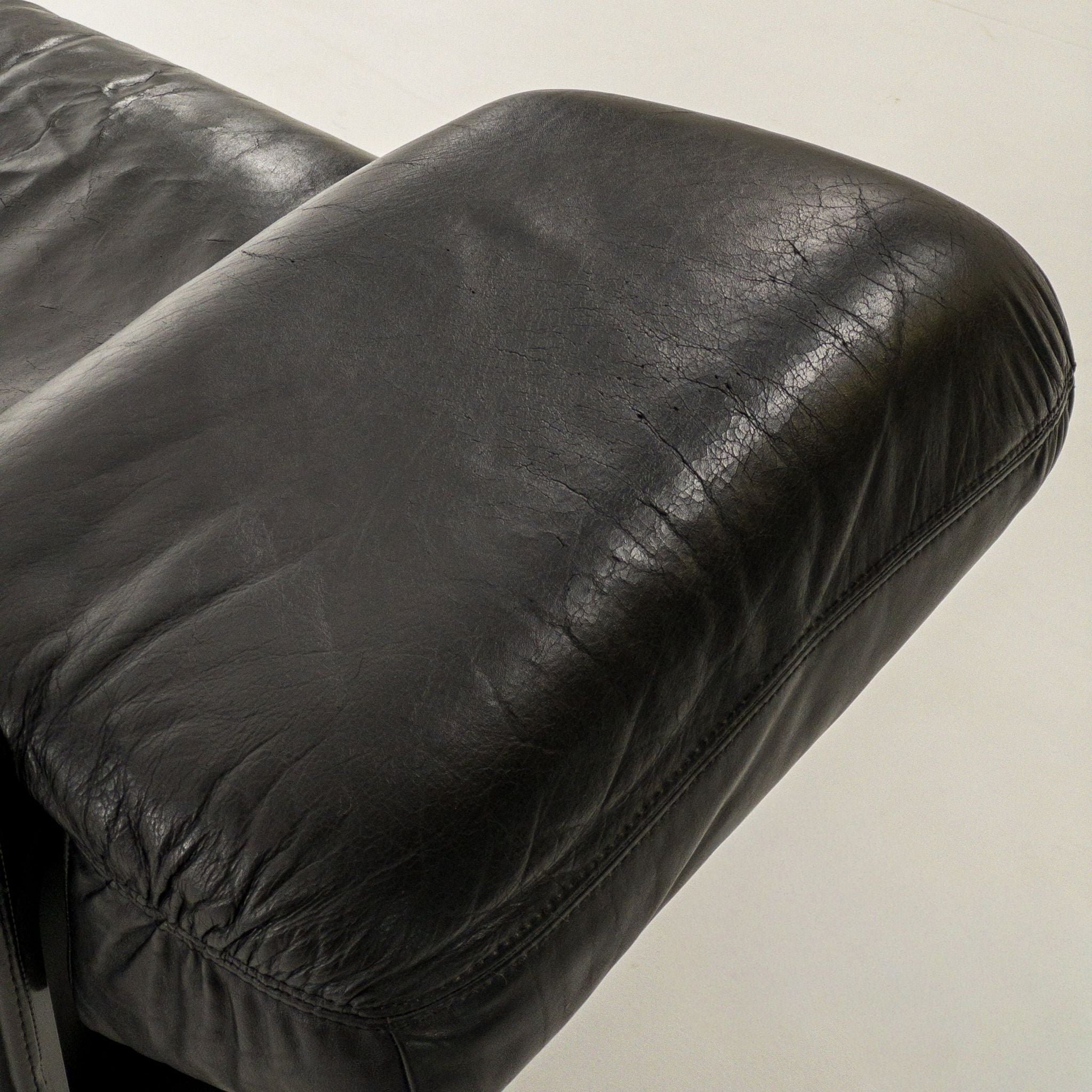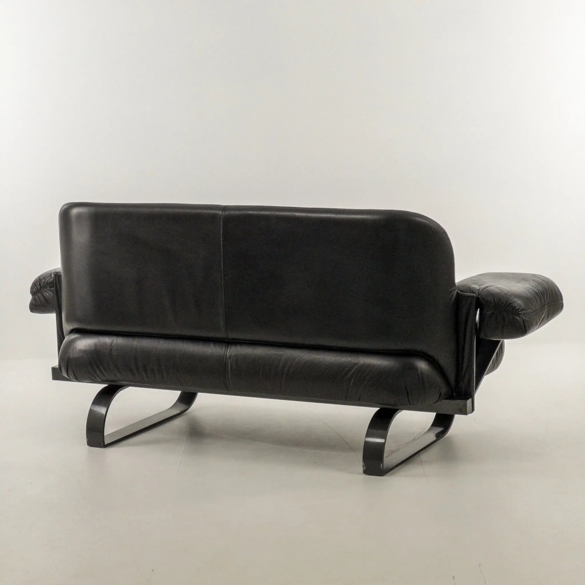 1980’s Mazzoli Witness Sofa by Michele De Lucci. Rare chance to own this hard to come by sofa. Post modern meets industrial meets Memphis vibes all rolled into one! Soft and supple leather with heavy duty steel framing. Cantilever style arms with exposed fixings reminiscent of a railway bridge with the sleigh style legs in matching profile flat bar steel. Plenty of vintage patina to the leather on the main contact surfaces but presents beautifully overall as evidenced by the photographs and is ready to be a well used feature in your desired space!