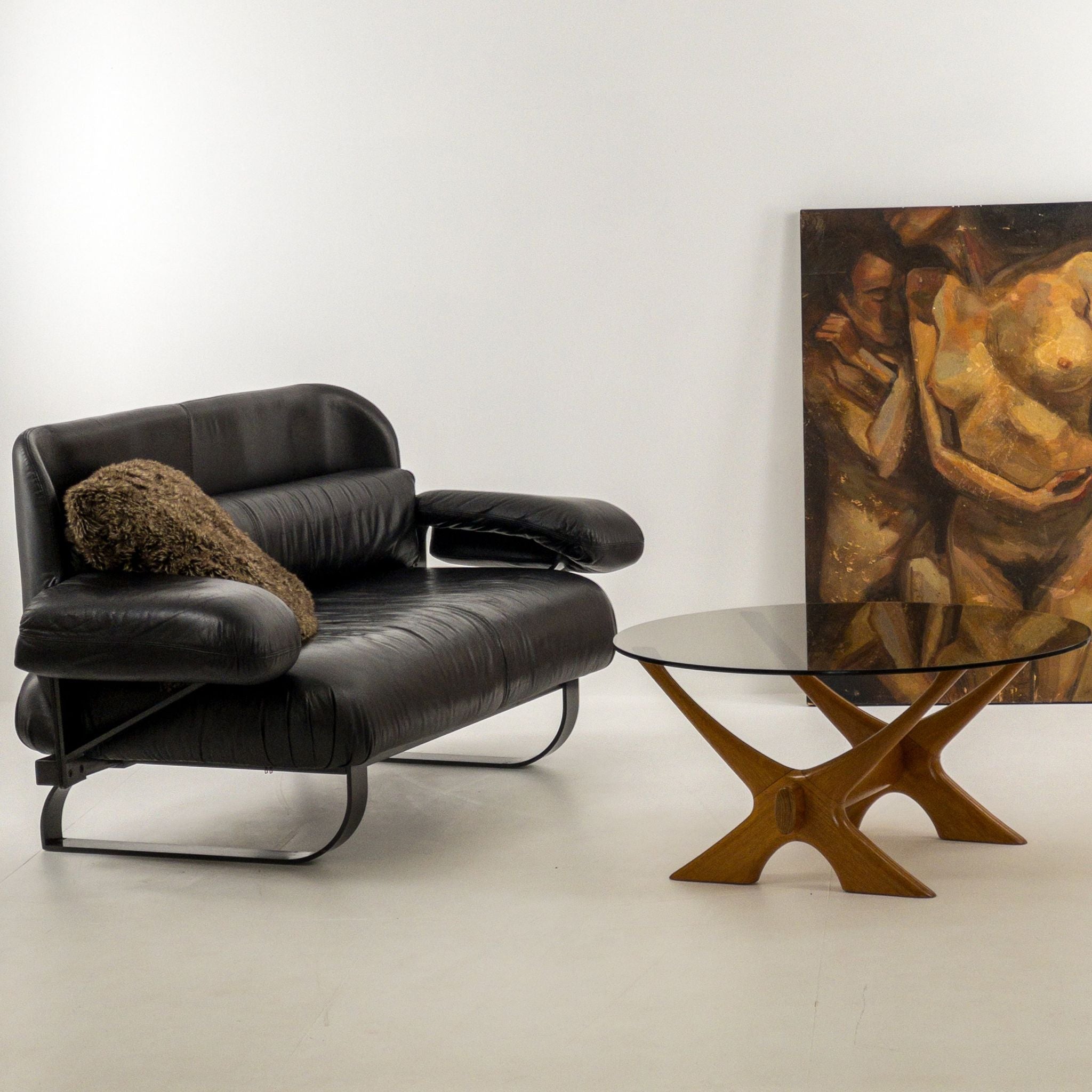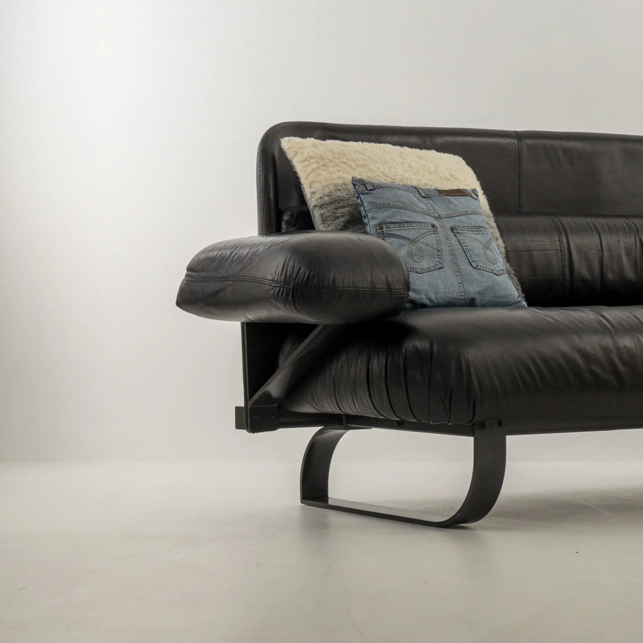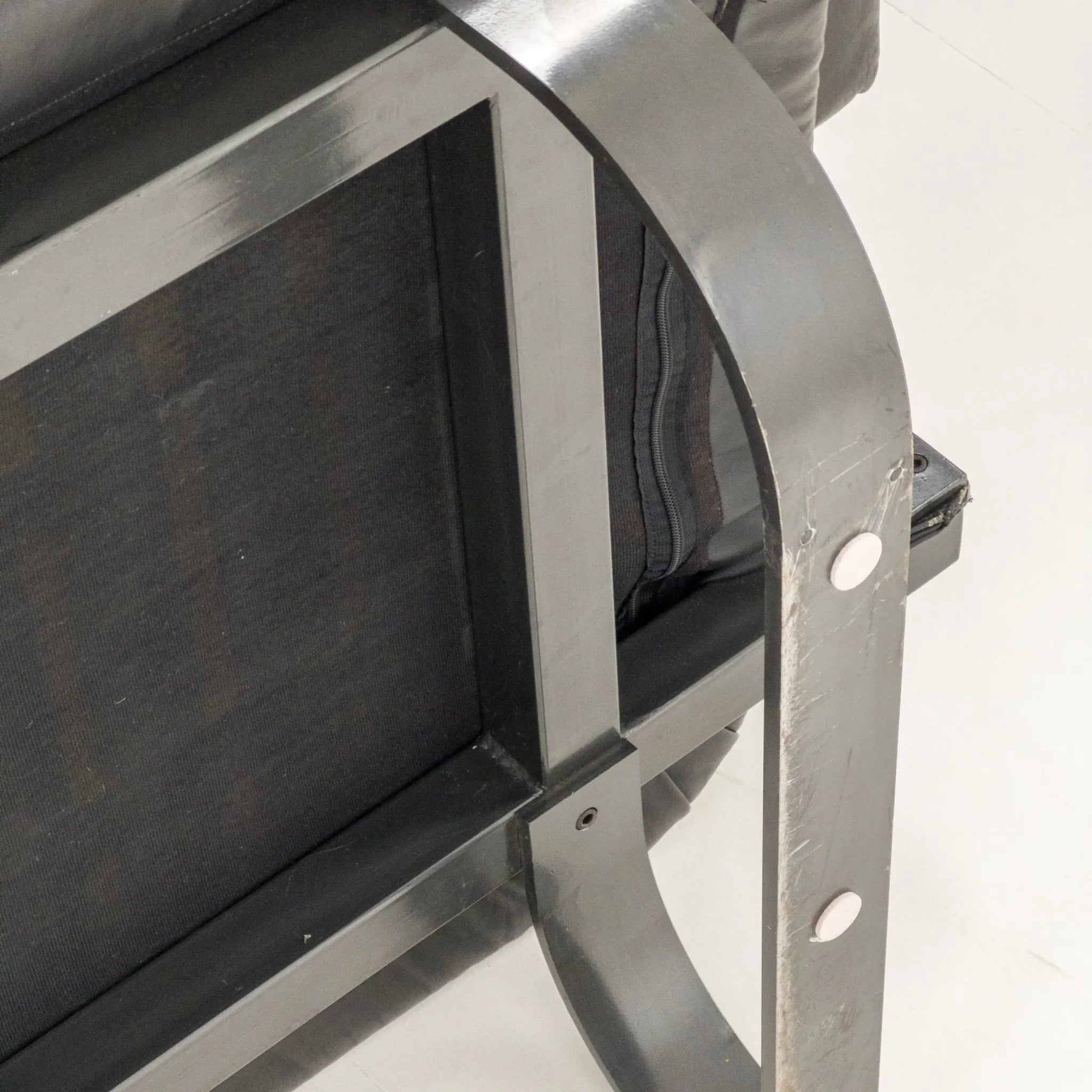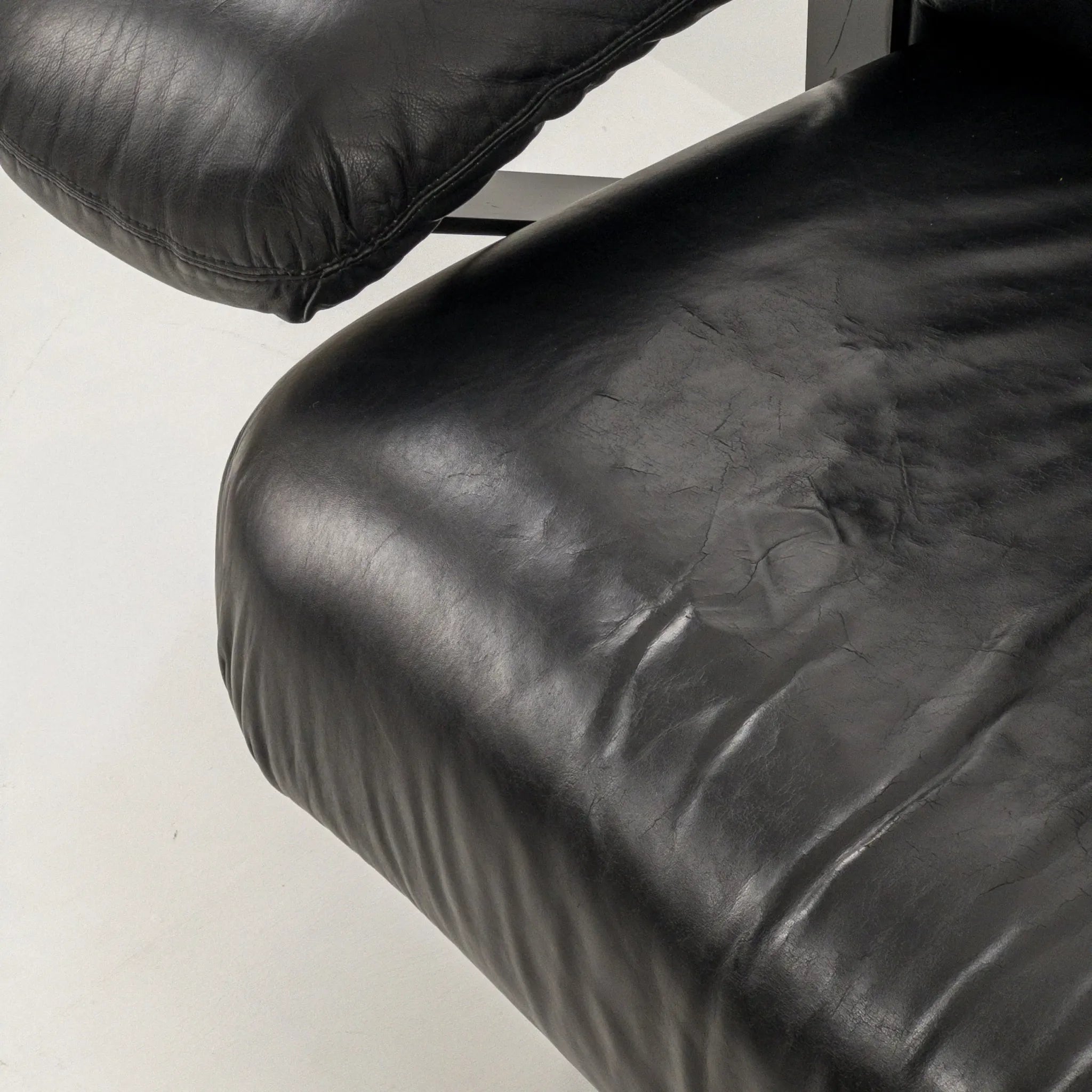 1980’s Mazzoli Witness Sofa by Michele De Lucci. Rare chance to own this hard to come by sofa. Post modern meets industrial meets Memphis vibes all rolled into one! Soft and supple leather with heavy duty steel framing. Cantilever style arms with exposed fixings reminiscent of a railway bridge with the sleigh style legs in matching profile flat bar steel. Plenty of vintage patina to the leather on the main contact surfaces but presents beautifully overall as evidenced by the photographs and is ready to be a well used feature in your desired space!
