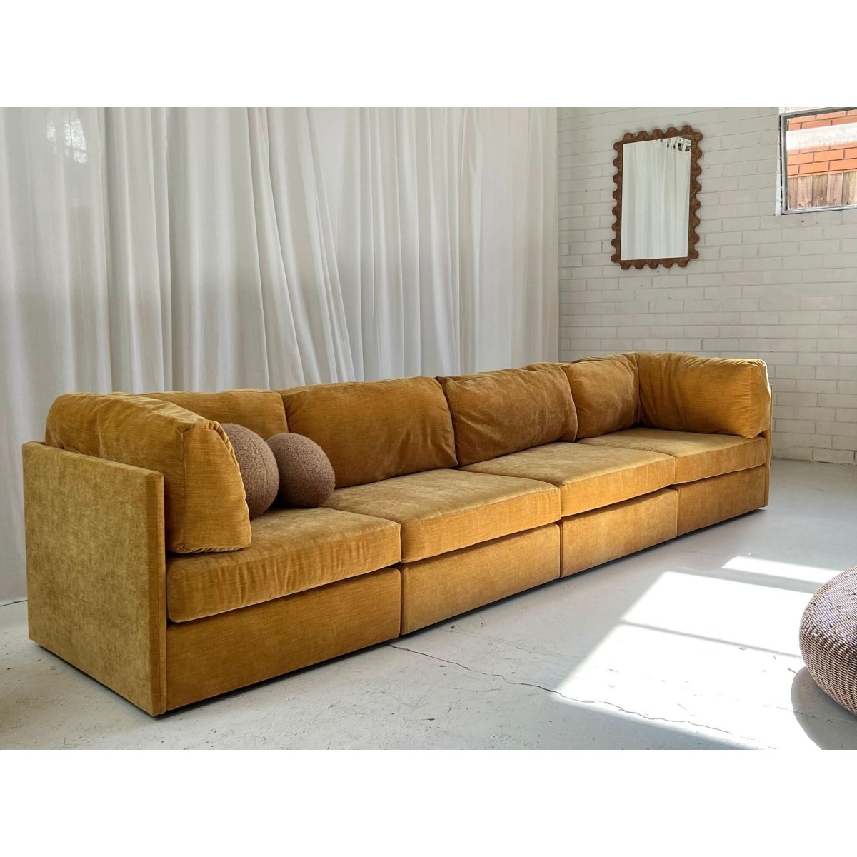 Stunning original vintage 4 piece 70’s modular sofa, freshly reupholstered in a gorgeous quality velvet by Warwick.