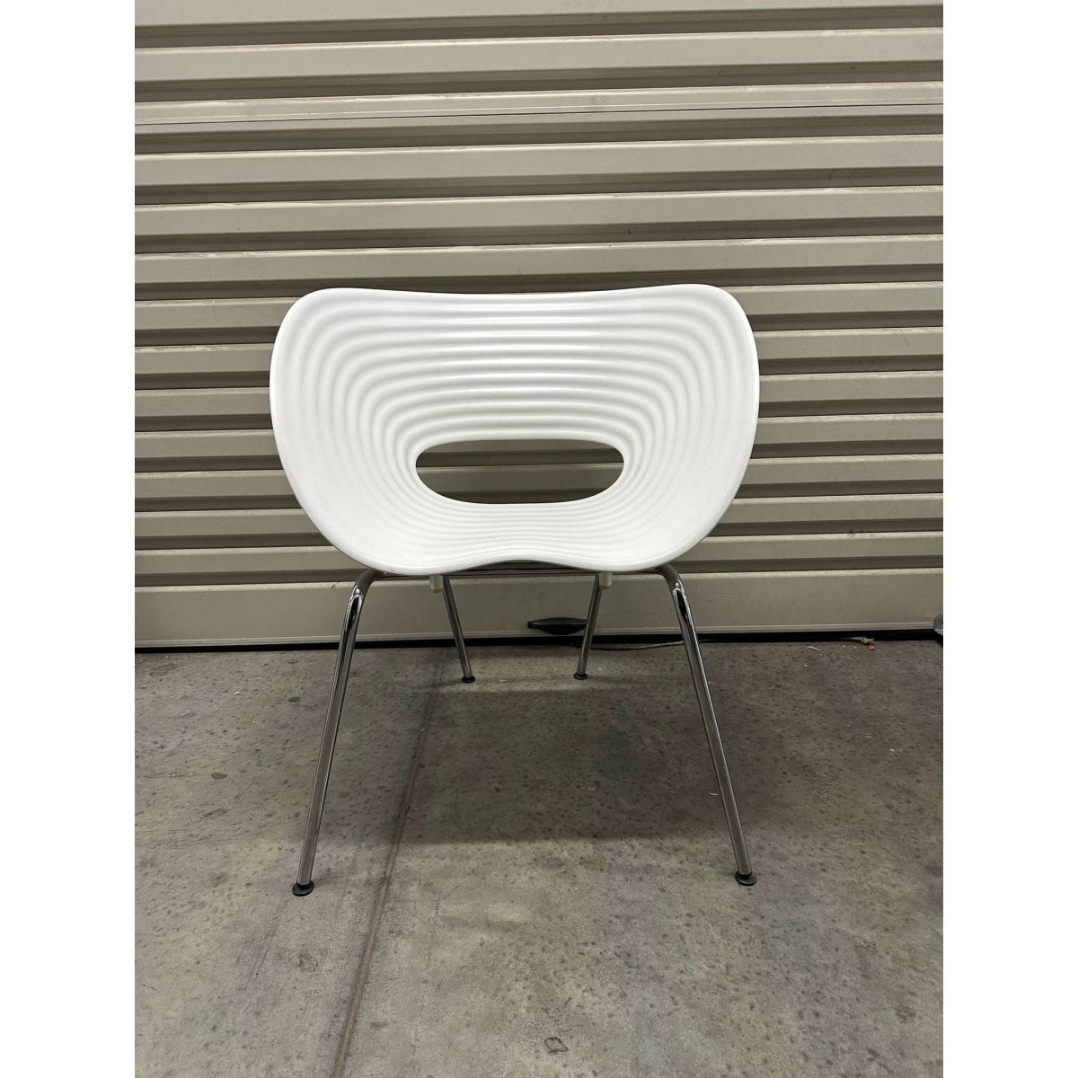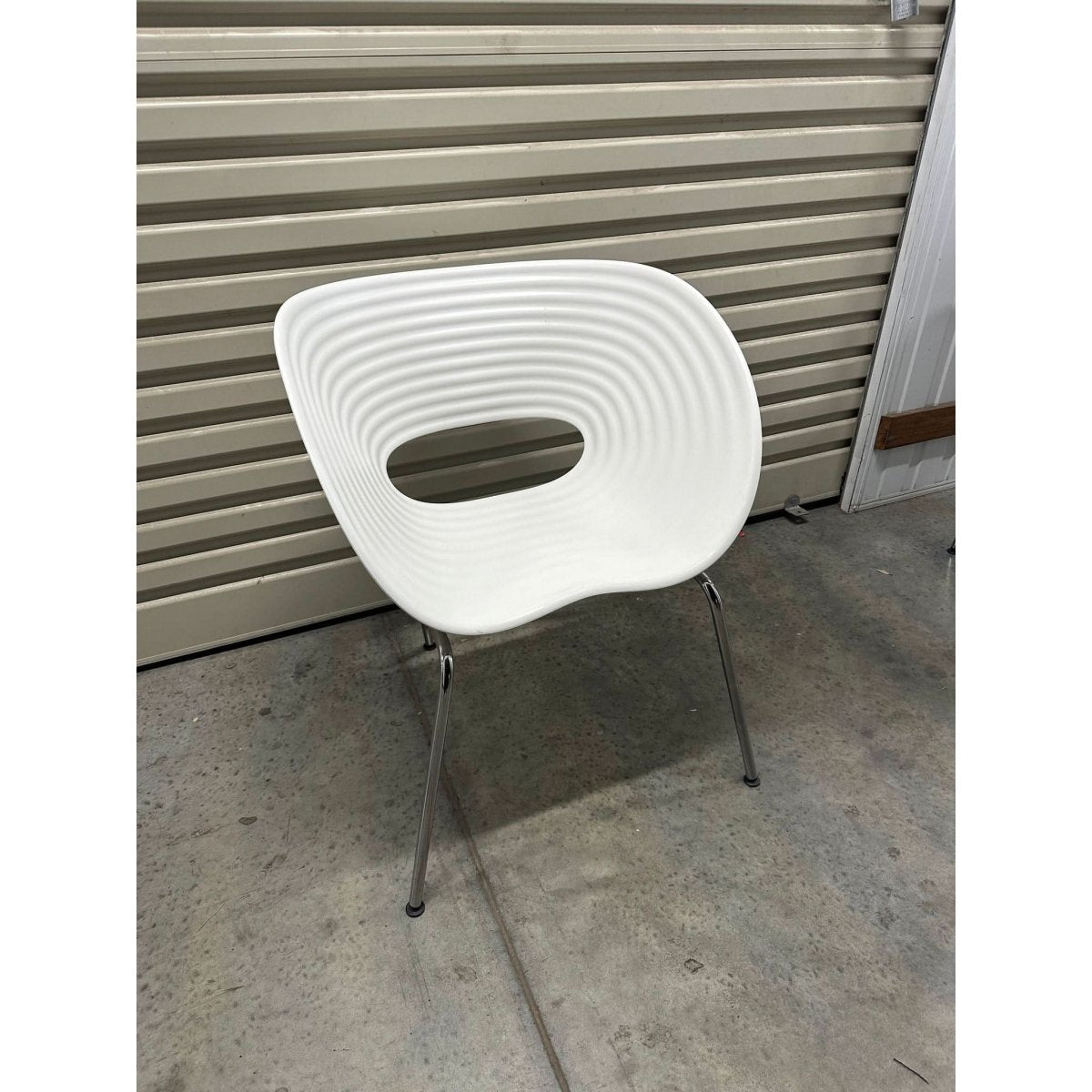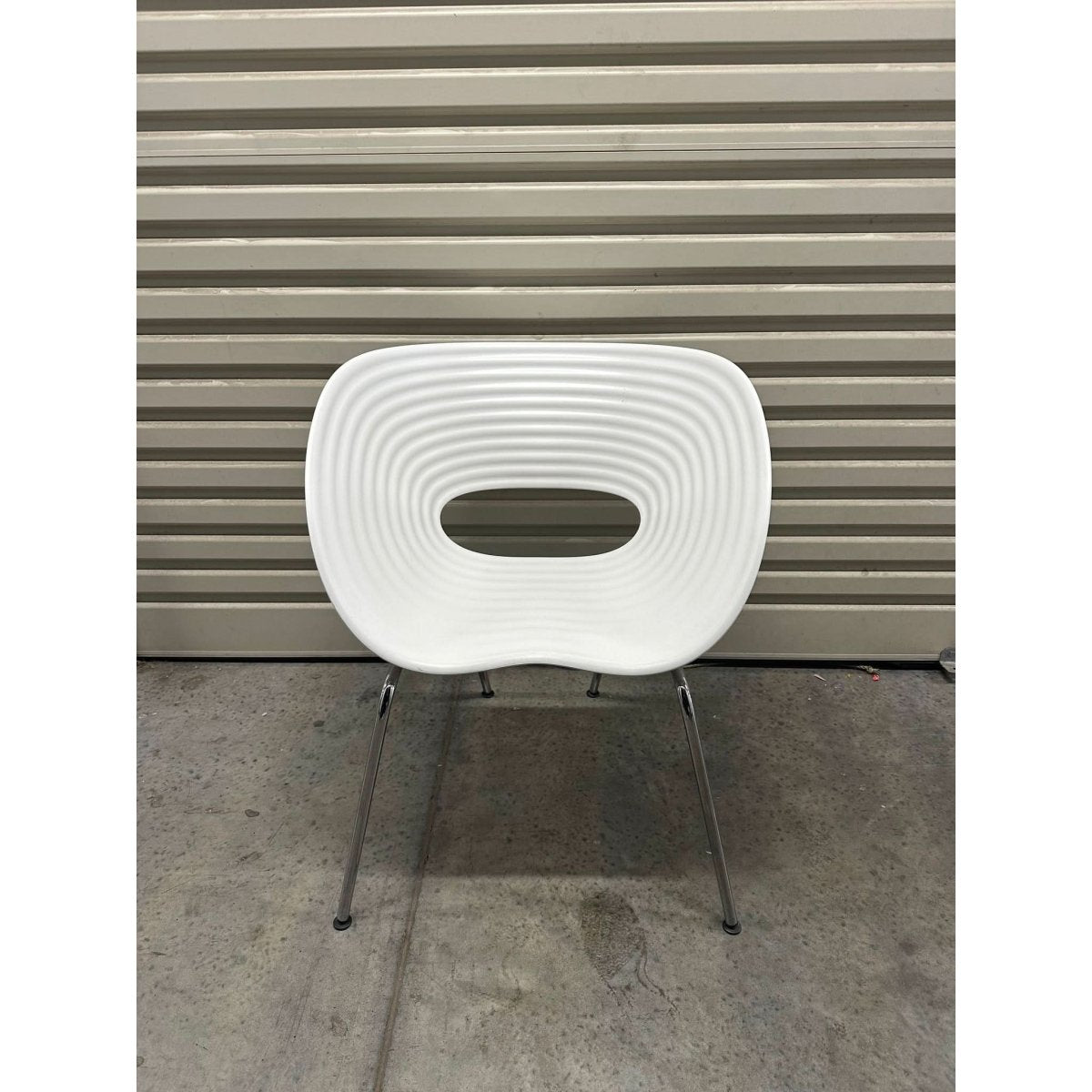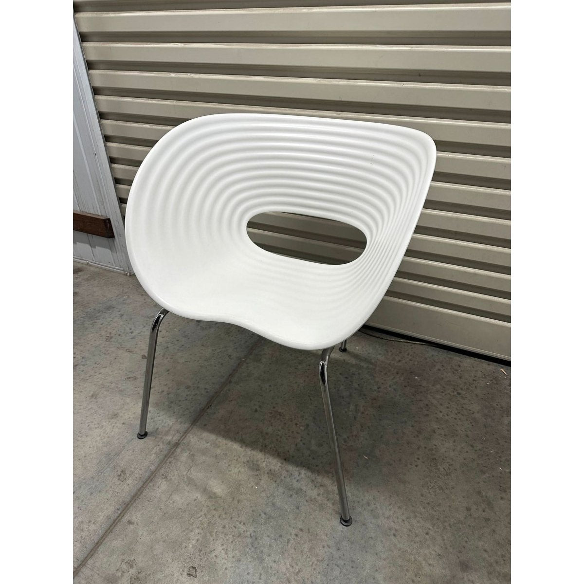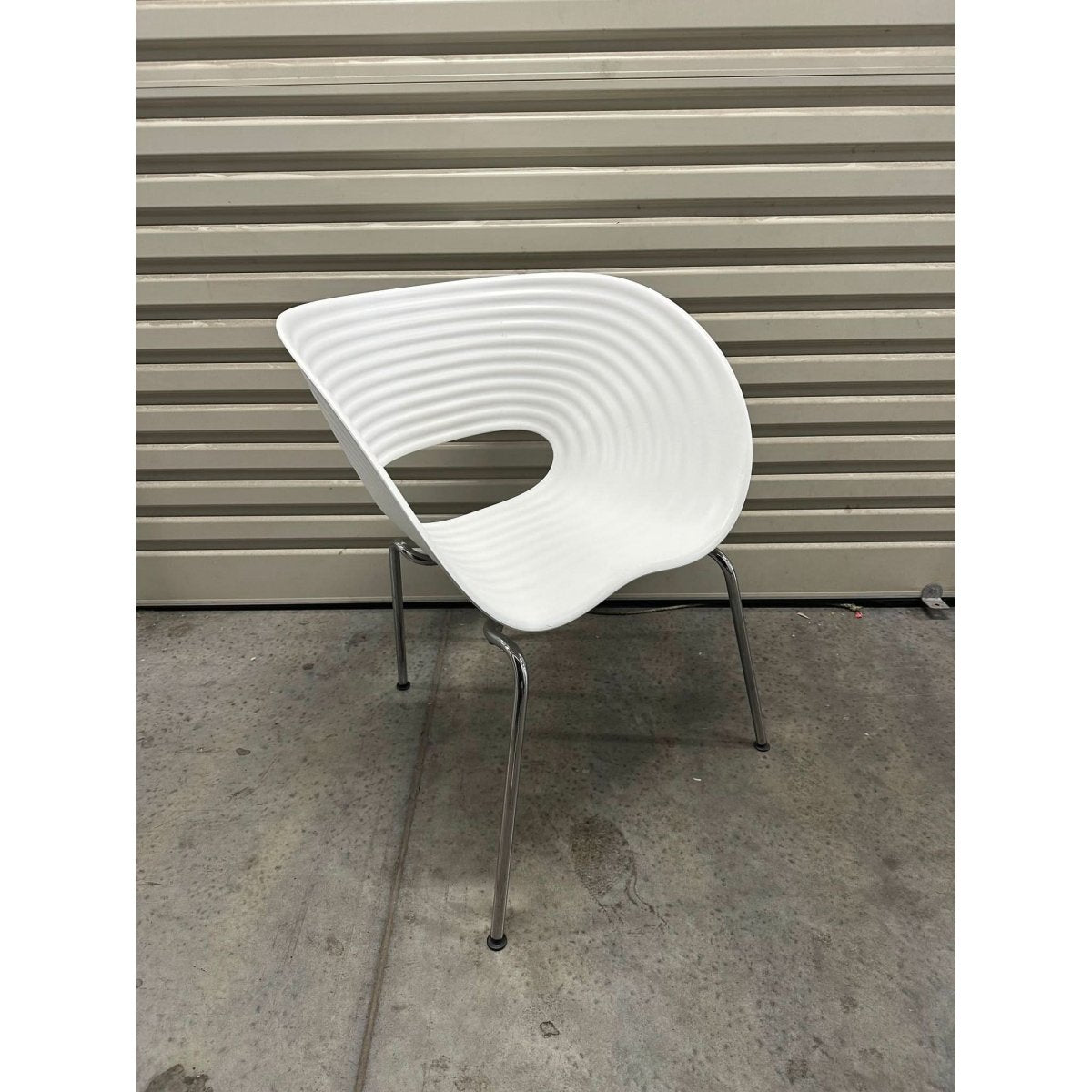 The Vitra Tom Vac Chair, designed by Ron Arad, is a distinctive piece that combines style, comfort, and versatility. Its curved, ribbed shell provides ergonomic support while offering a modern aesthetic. The chair is suitable for both indoor and outdoor use, making it an excellent choice for dining areas, conference rooms, and even patios.