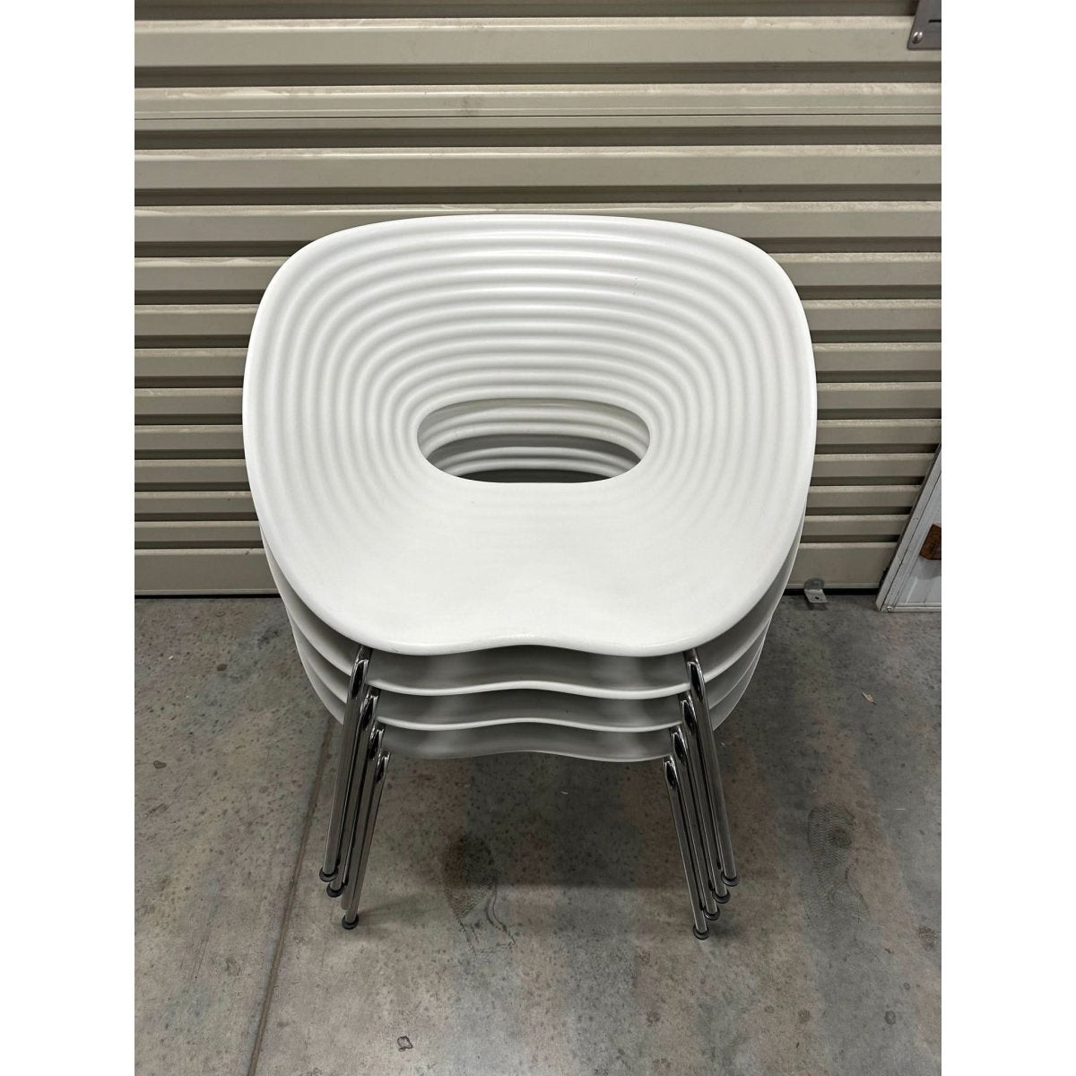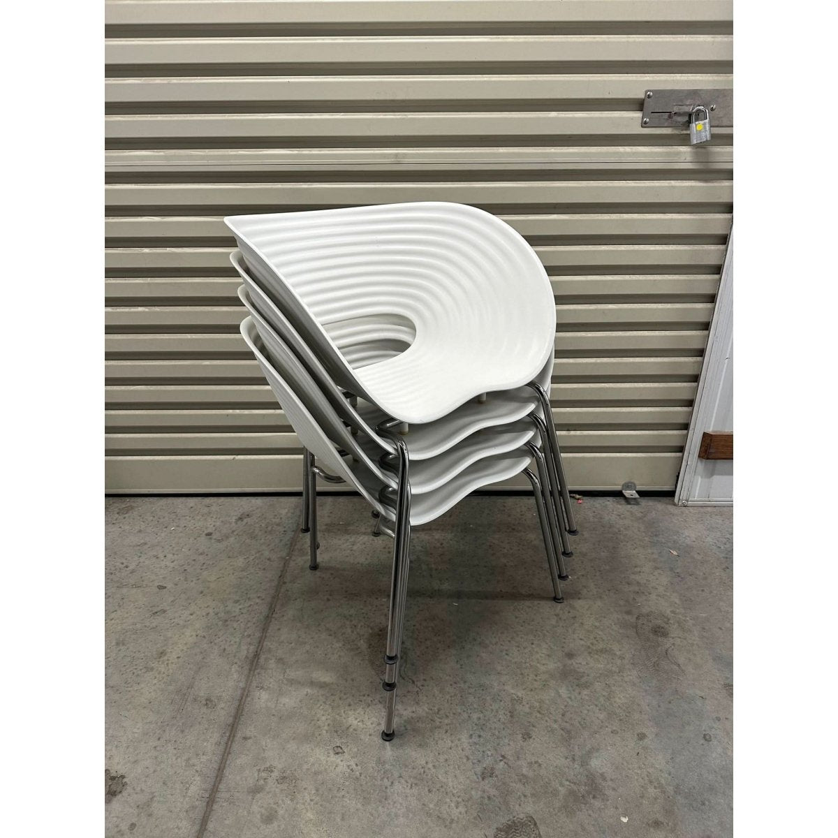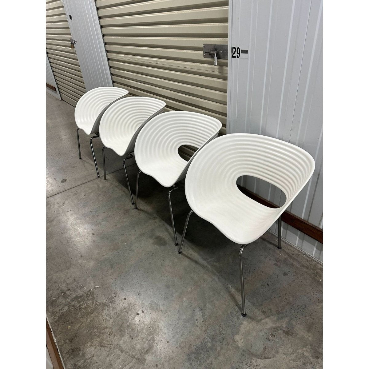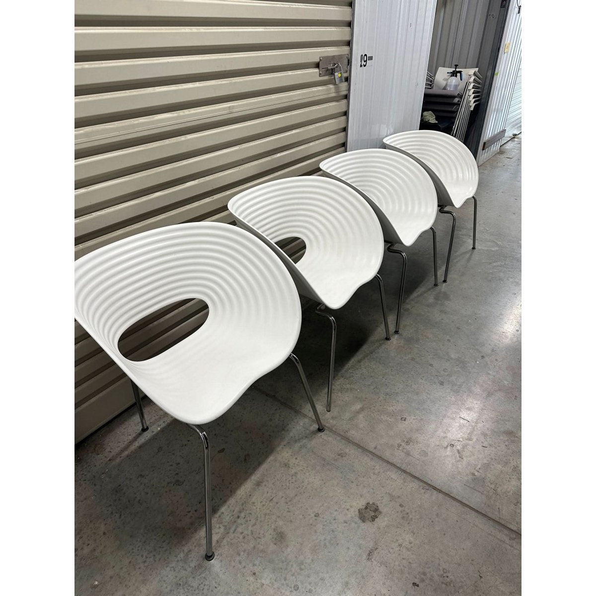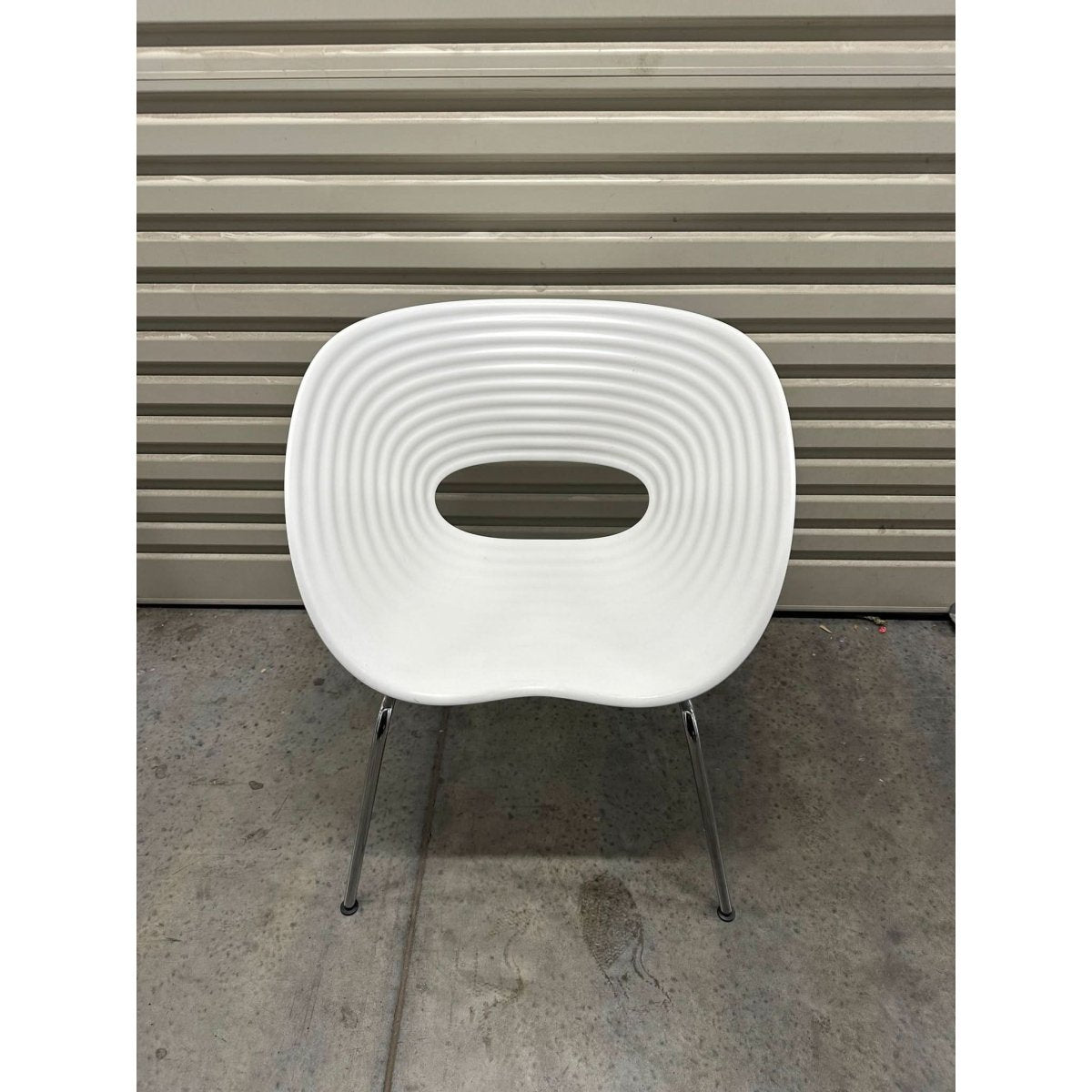 The Vitra Tom Vac Chair, designed by Ron Arad, is a distinctive piece that combines style, comfort, and versatility. Its curved, ribbed shell provides ergonomic support while offering a modern aesthetic. The chair is suitable for both indoor and outdoor use, making it an excellent choice for dining areas, conference rooms, and even patios.