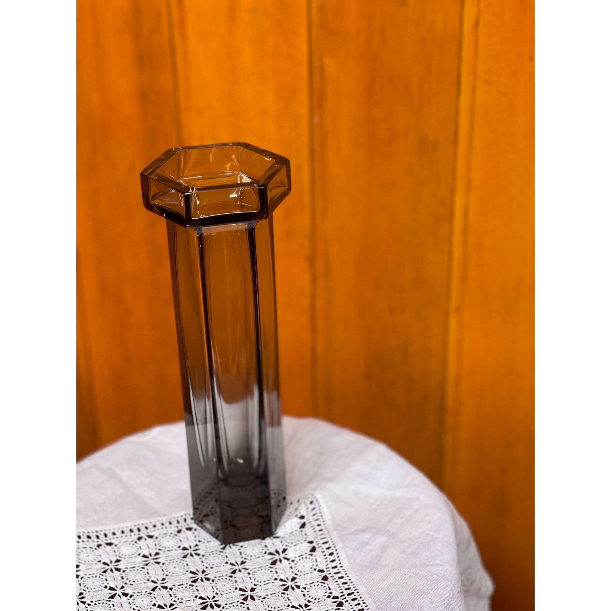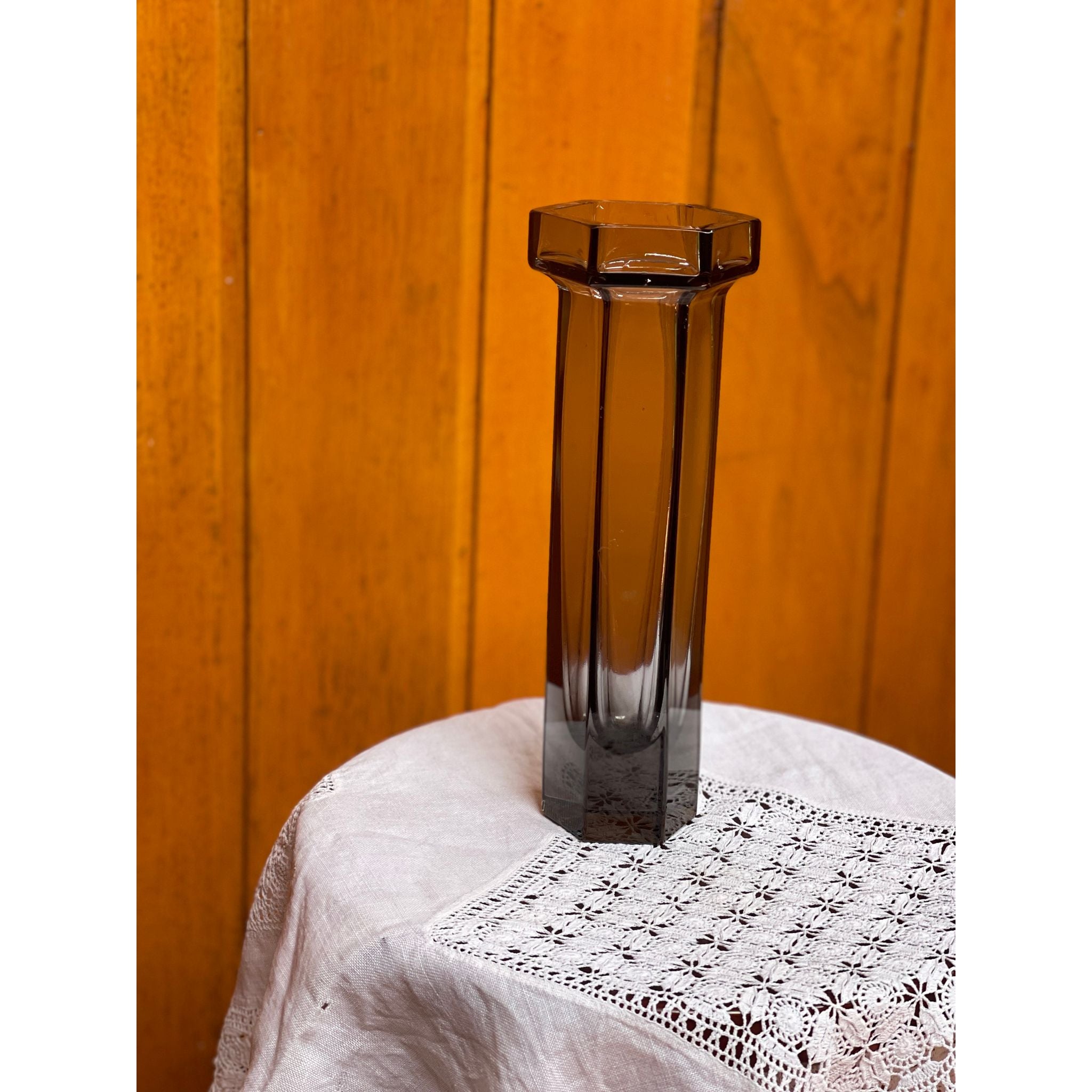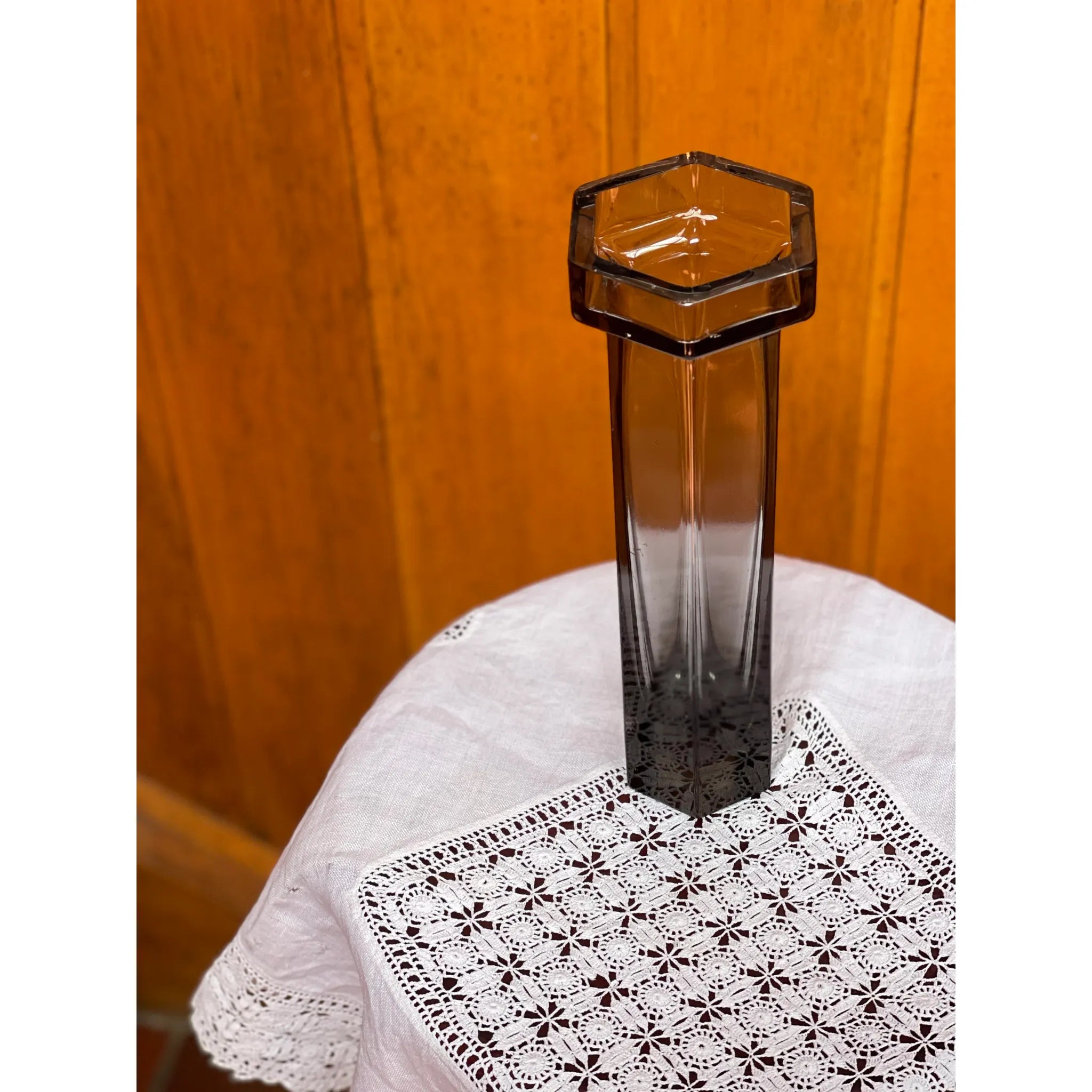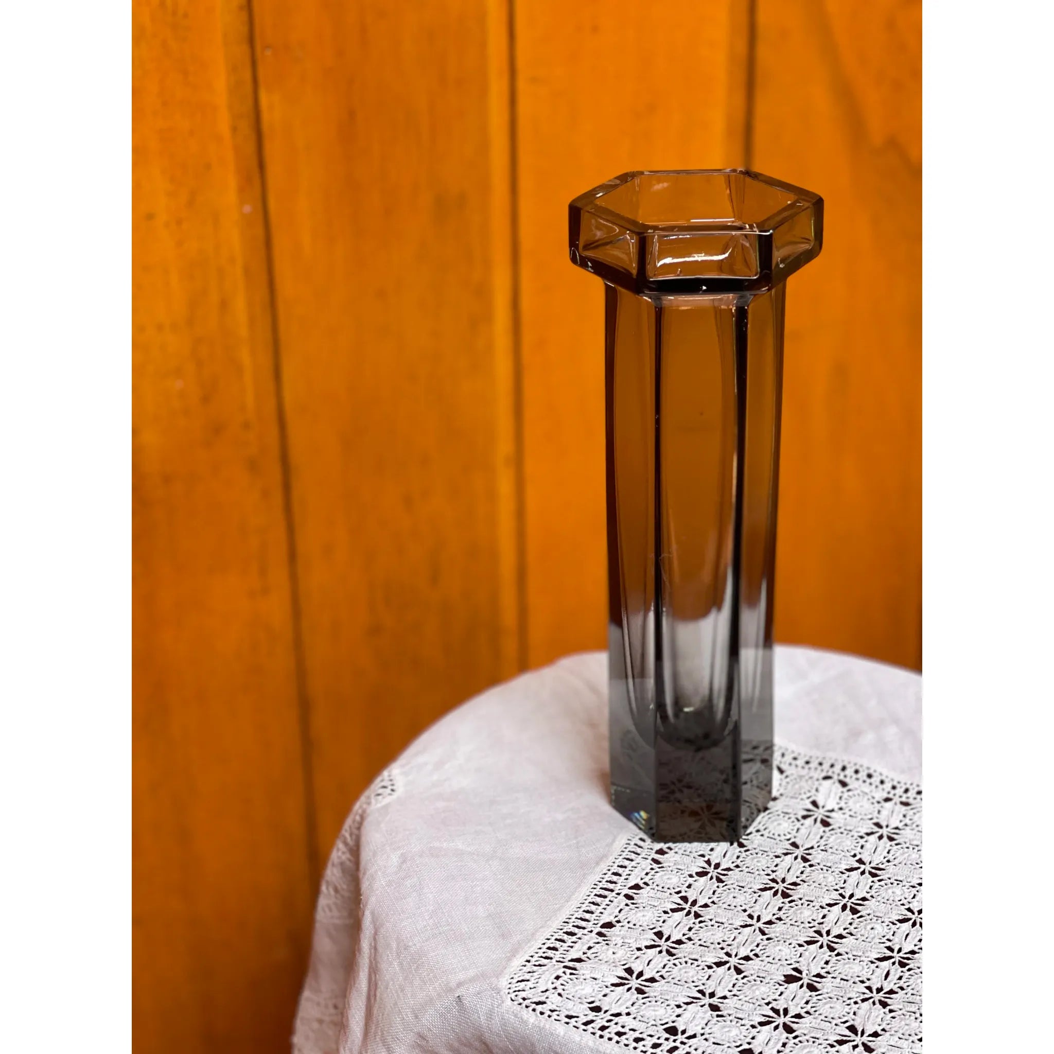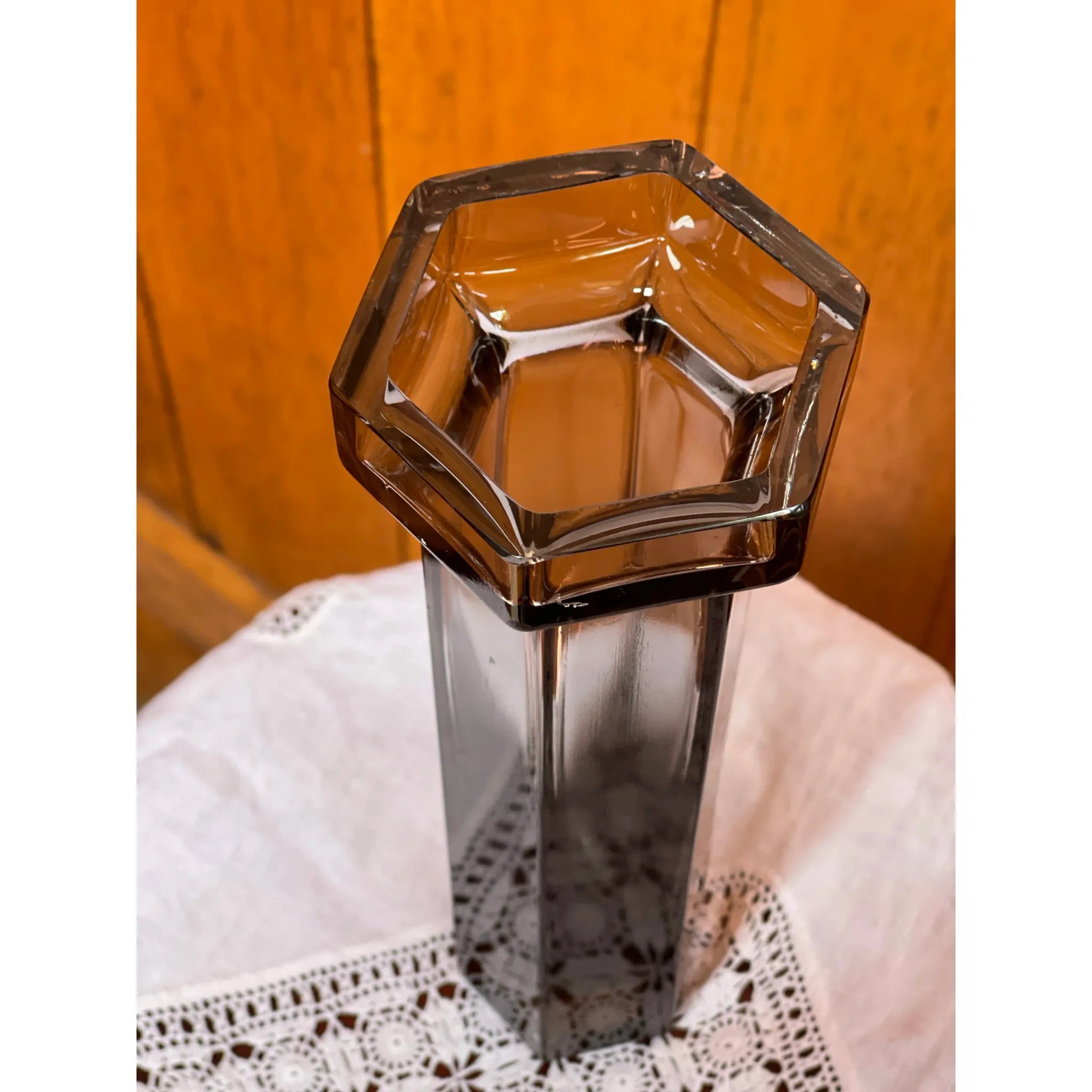 Wedgwood brutus hexagonal glass vase in smokey grey.